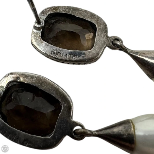 Smokey Quartz & Faux Pearl Drop Sterling Silver Earrings