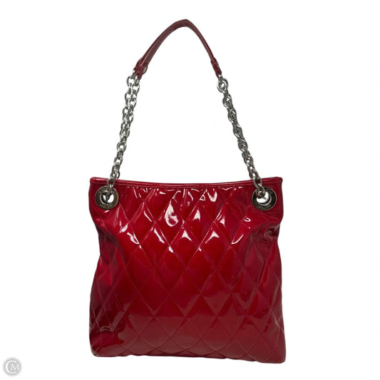 Poppy Liquid Gloss Patent Leather Quilted Shoulder Bag Designer By Coach, Size: Medium