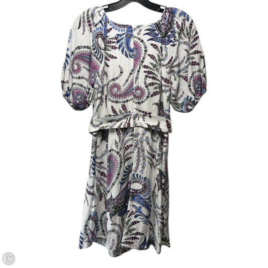 Paisley Linen Blend Belted Puff Sleeve Dress By Loft In Paisley Print, Size: 4