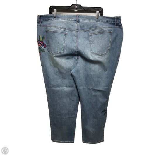Girlfriend Slim Leg Ankle Floral Embroidery Jeans By Chicos In Blue Denim, Size: 20