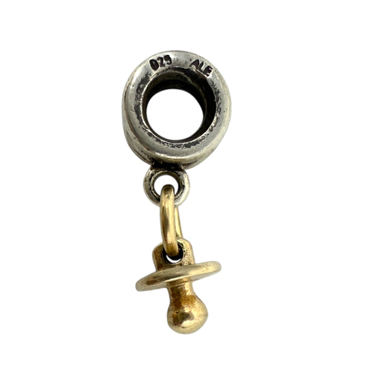 Two Tone 14K Gold & Sterling Silver Baby Pacifier Dangle Charm By Pandora