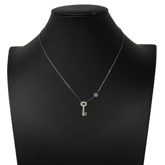 Crystal & Sterling Silver Key & Evil Eye Pendant Necklace