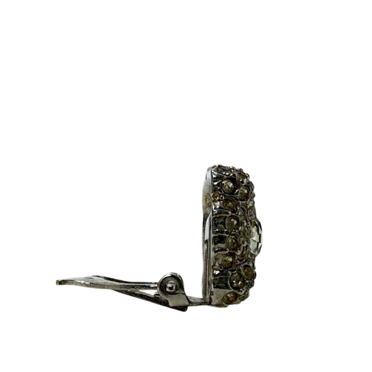 Square Rhinestone Clip Earrings By Carnegie