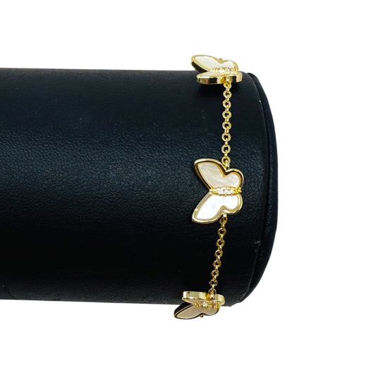 Gold Tone, Mother Of Pearl & CZ Butterfly Slider Bracelet