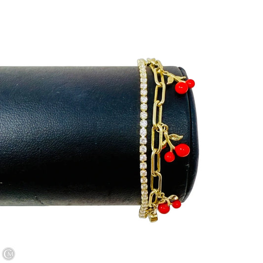 Gold Tone Cubic Zirconia & Cherry Charm Layered Slider Bracelet