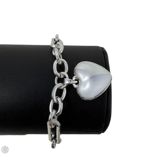 Silver Tone Puffy Heart Charm Chain Bracelet