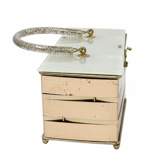 Vintage Collectible Mid-Century Modern Lucite & Woven Copper Box Bag, Size: Small