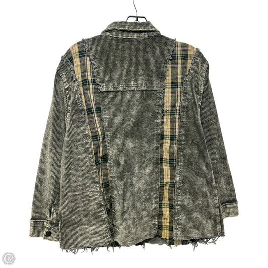 Corduroy Flannel Shirt Jacket By Pol In Green, Size: S