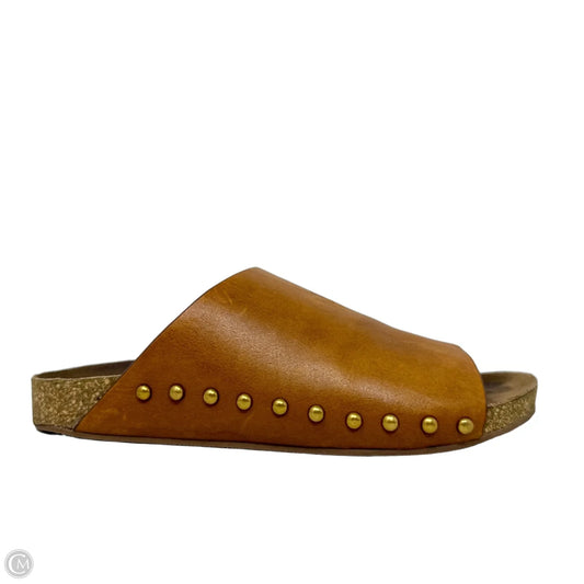 Calfskin Leather Rivet Slide Sandals By Polo Ralph Lauren In Tan, Size: 7.5