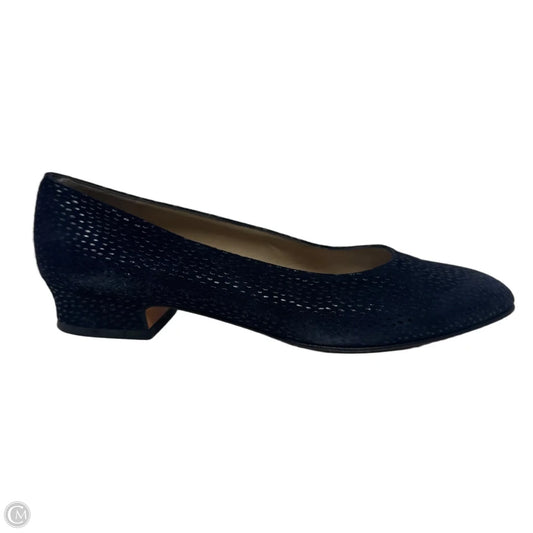Suede Block Heel Shoes Luxury Designer By Ferragamo In Navy, Size: 8.5