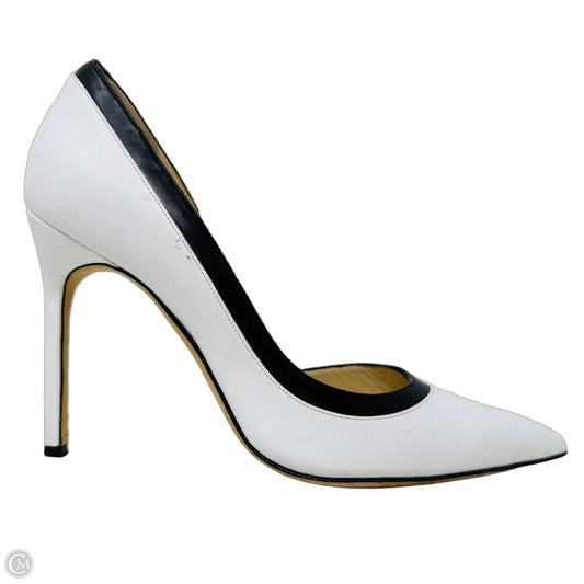 Colette 105 d'Orsay Stiletto Pumps Luxury Designer By Manolo Blahnik In Black & White, Size: 8.5 (38.5 IT)
