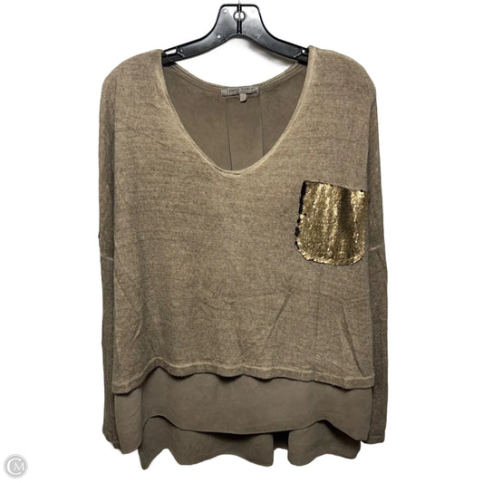 Layered Sweater Top With Sequin Pocket By Tempo Paris In Tan, Size: XL