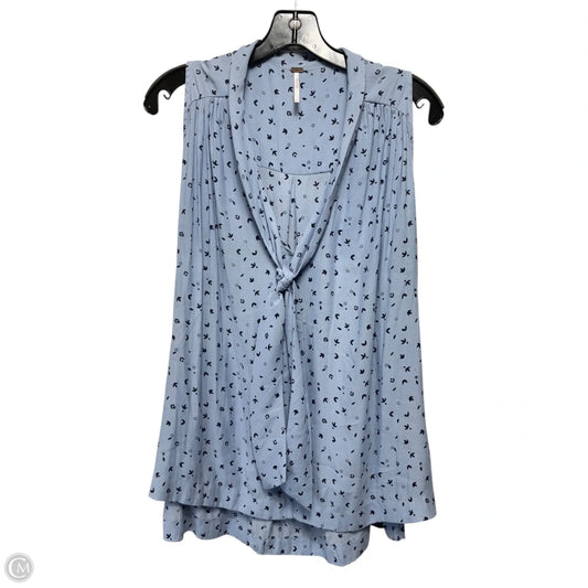 Sleeveless Tie Neck Blouse By Free People In Blue, Size: L