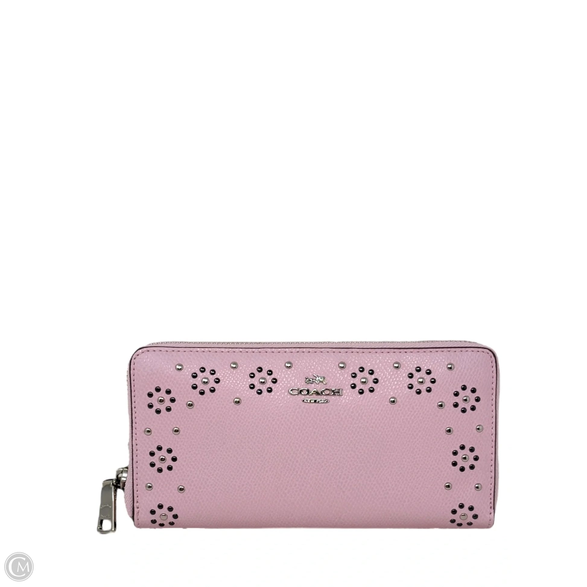Border Stud Accordion Zip Wallet In Silver/PetalDesigner By Coach, Size: Large