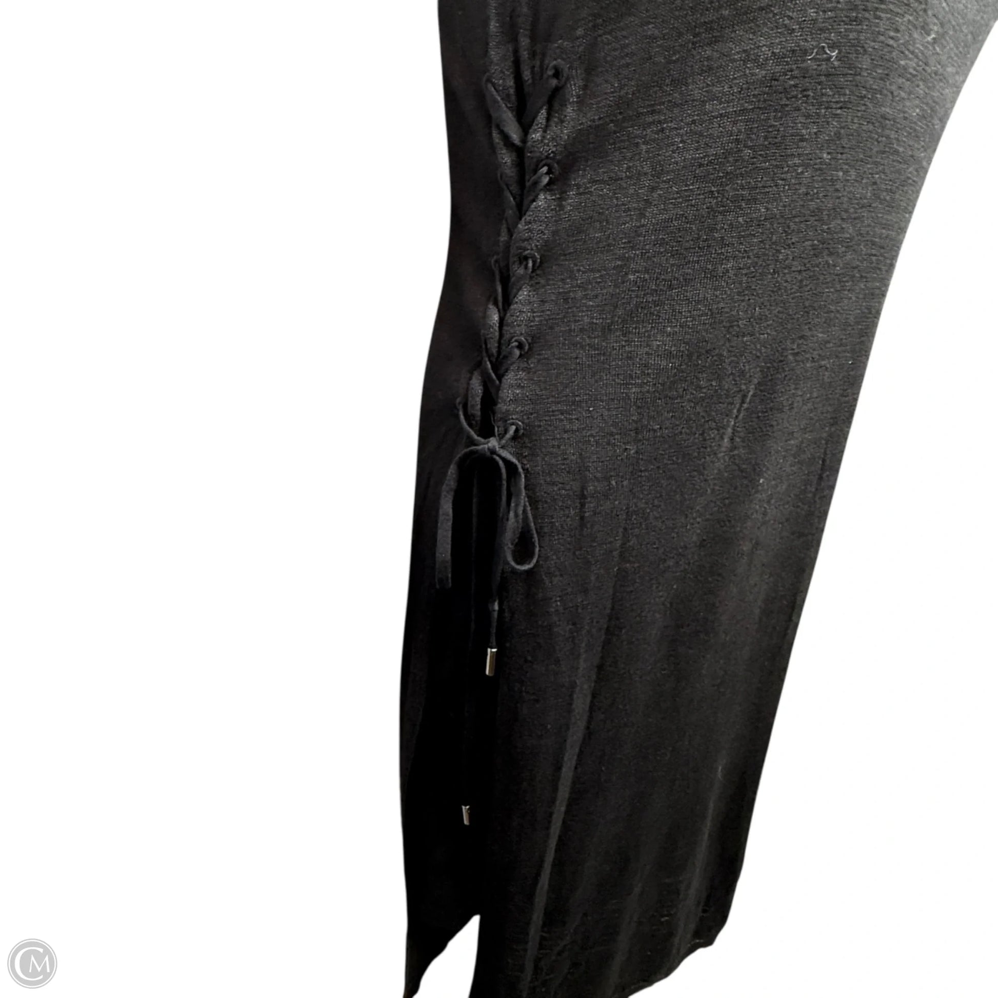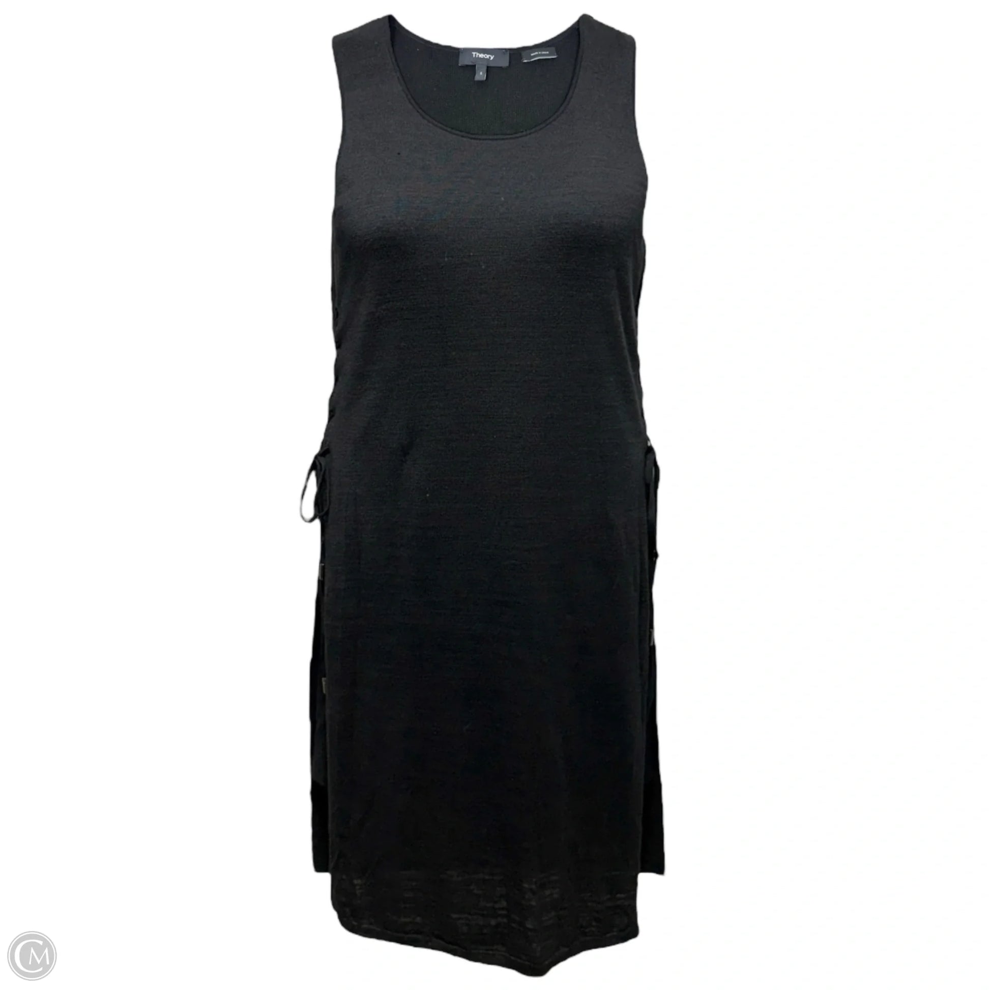 Linen Blend Double Layer Flamme Knit Dress With Lace Up Sides By Theory In Black, Size: S