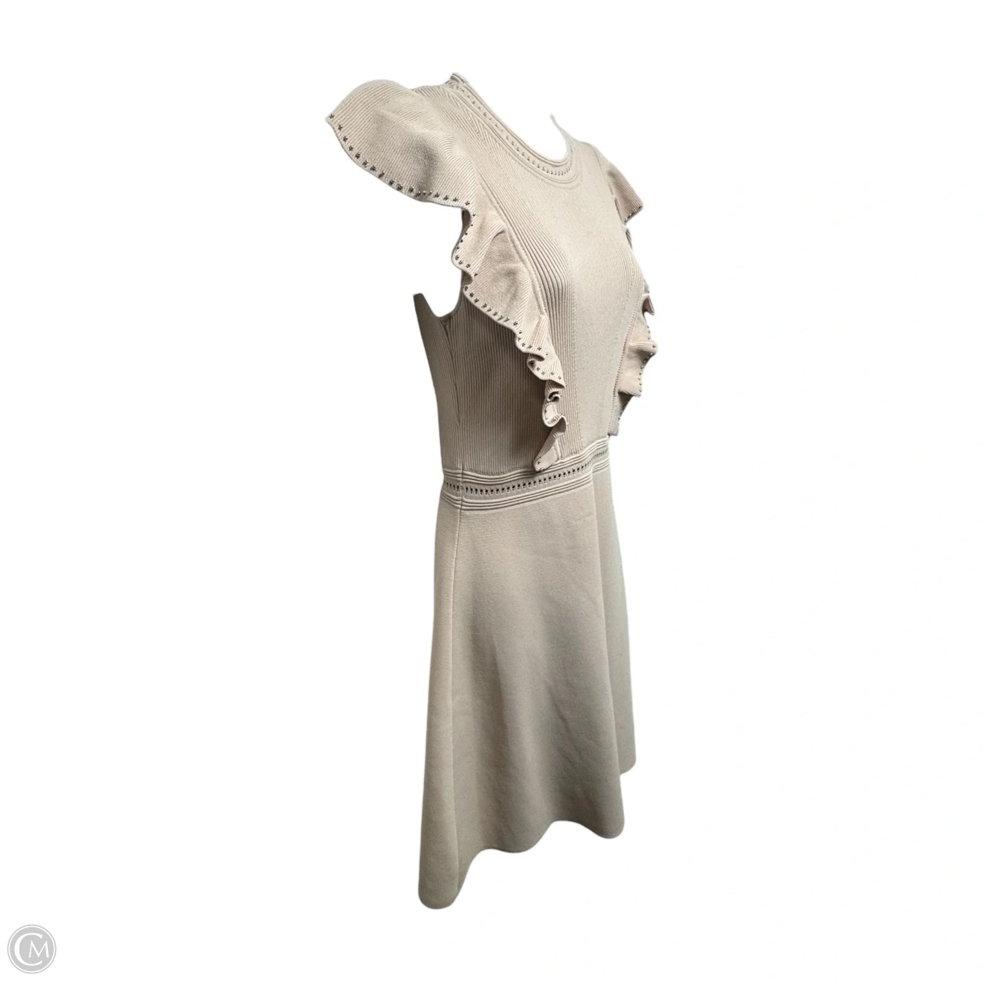 Tilla Ruffle-Trimmed Embellished Ribbed-Knit Mini Dress Designer By Sandro In Blush, Size: 6