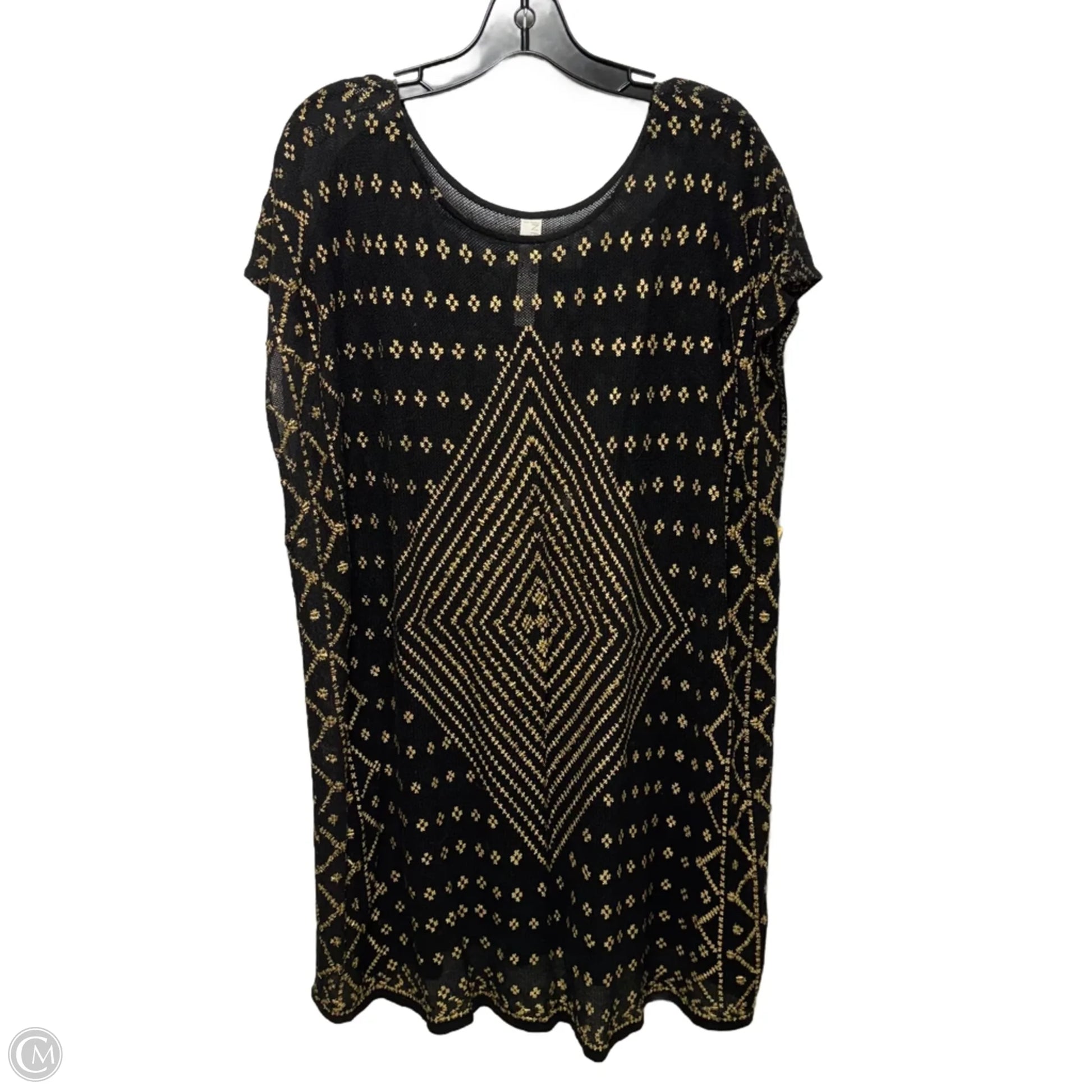 Dazzle in this Free People sheer tunic, adorned with intricate black and gold embroidery. Size XS for a flawless, chic fit.