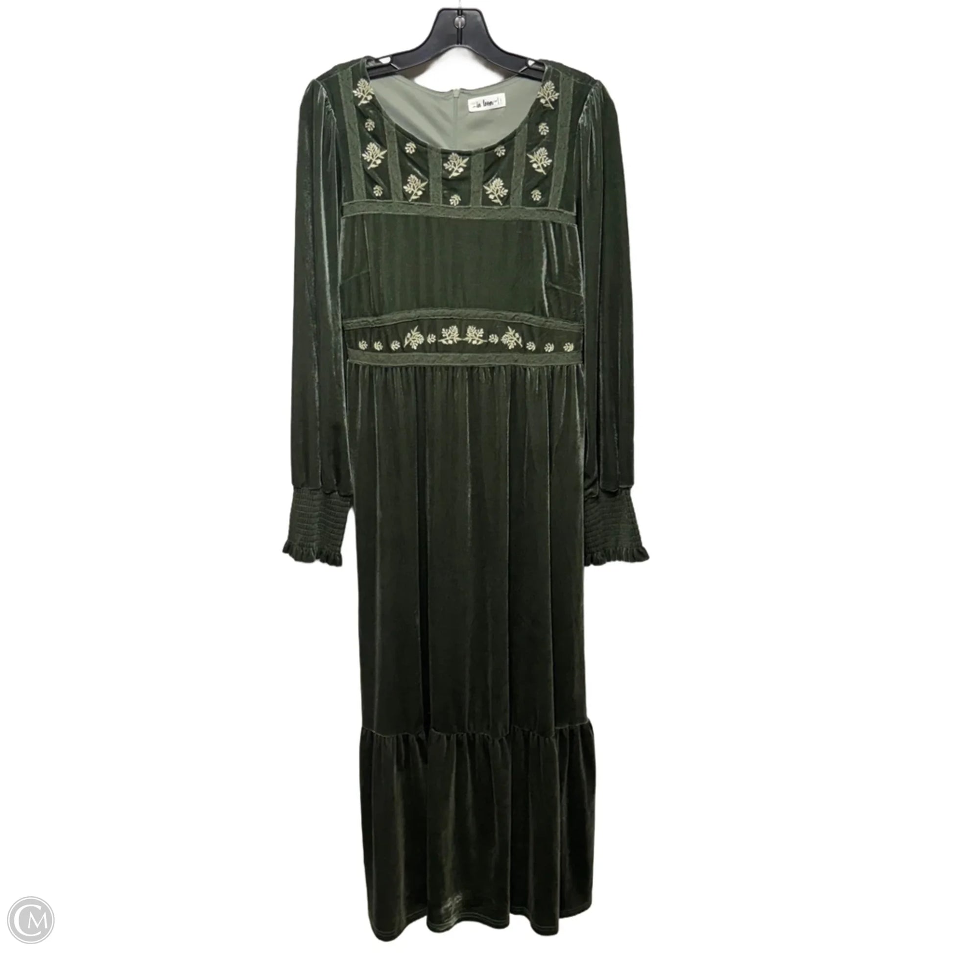 Ingrid Embroidered Velvet Maxi Dress By In Loom In Green, Size: L