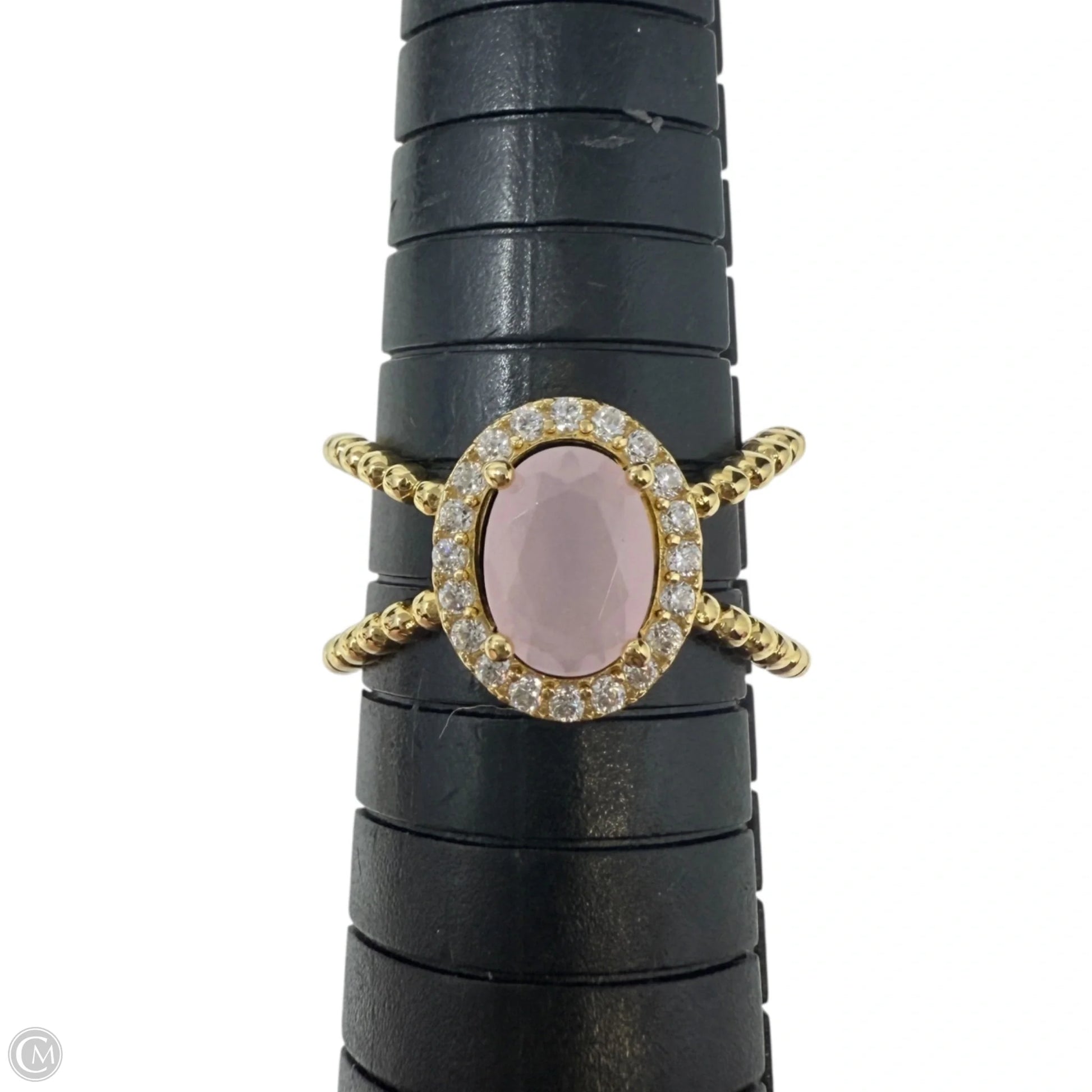 Gold Over Sterling Silver Pavé Halo Pink Quartz Twisted Band Ring, Size: 7