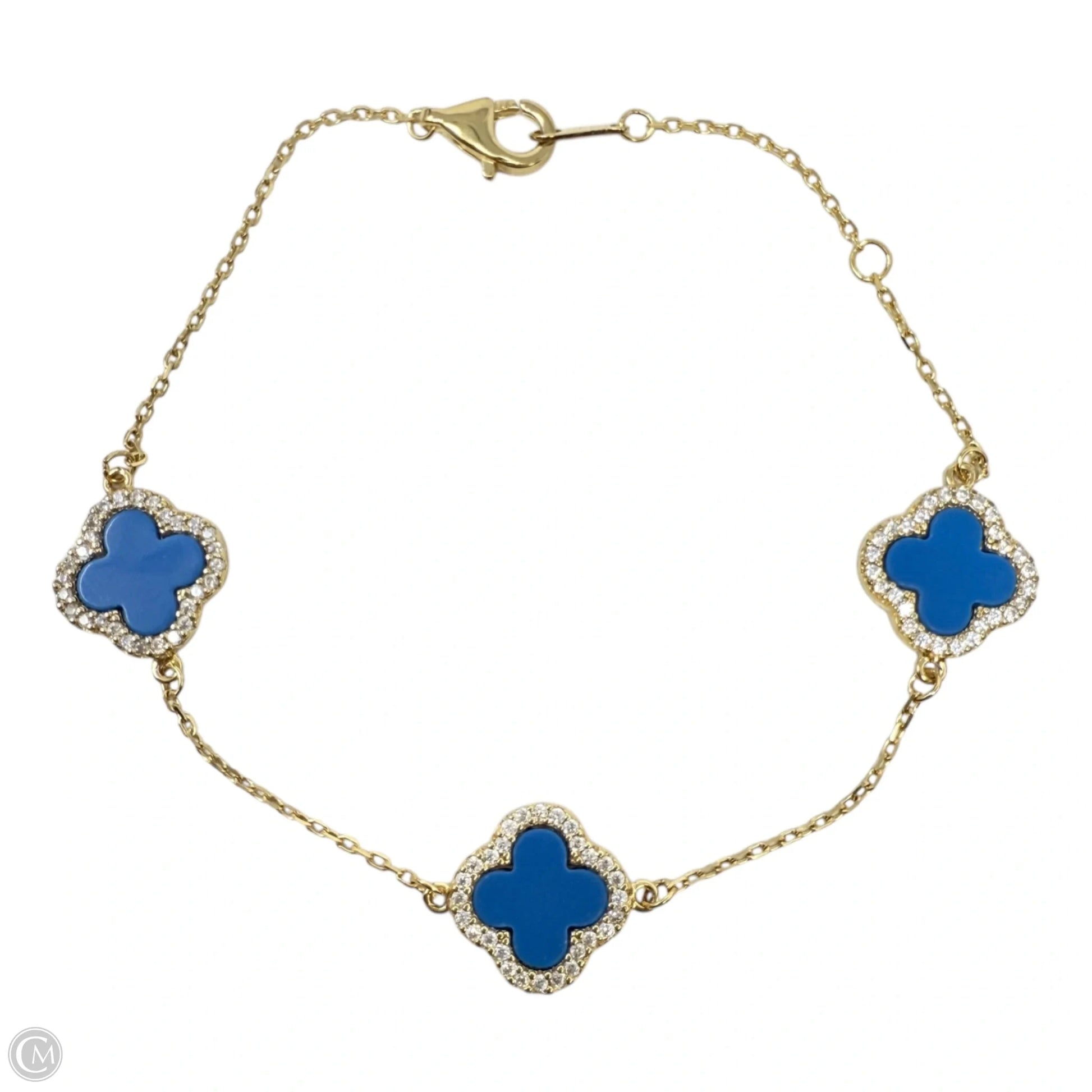 Gold Over Sterling Silver Three Pavé Clover Chain Bracelet
