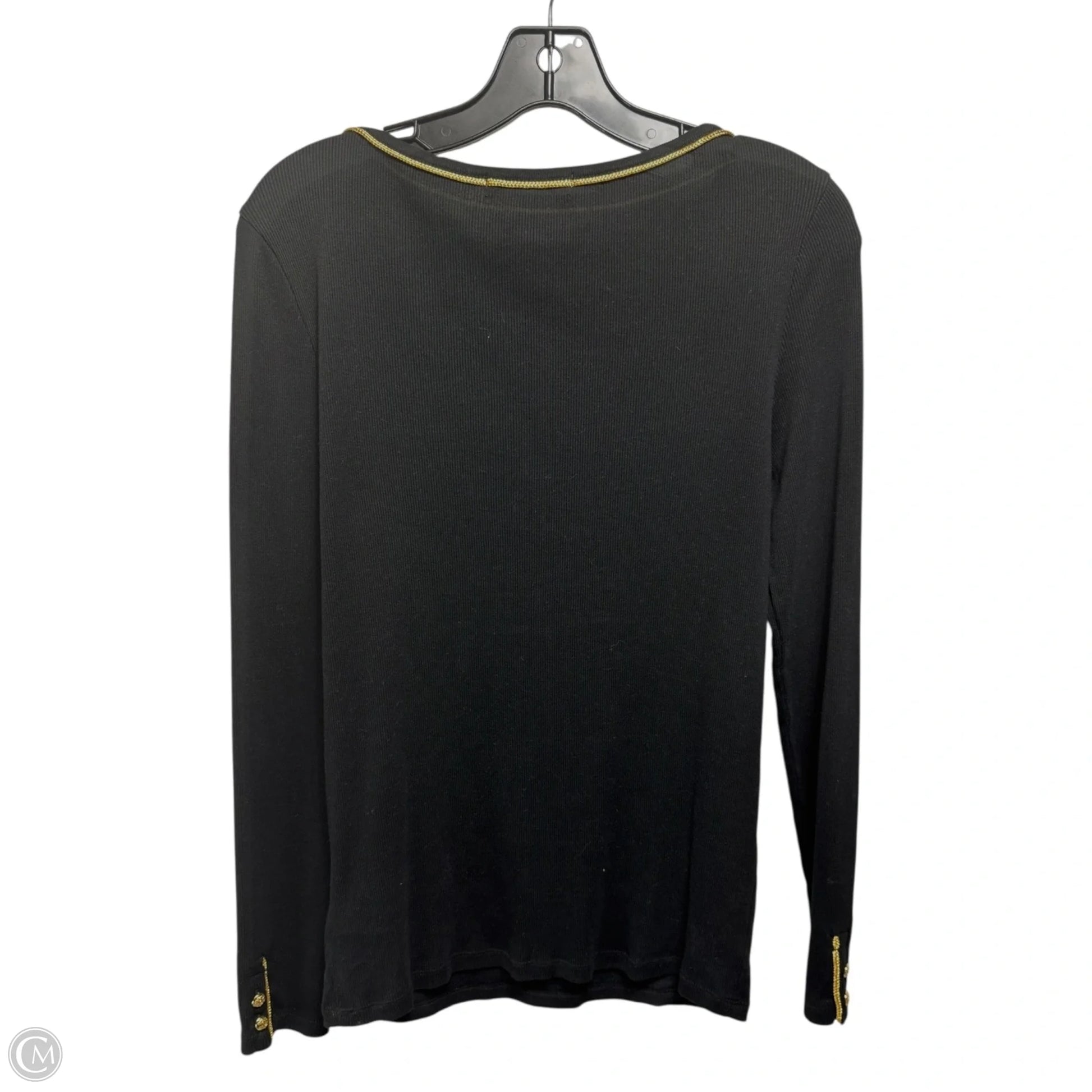 Gold Trim Ribbed Top Long Sleeve By Lauren By Ralph Lauren In Black & Gold, Size: M