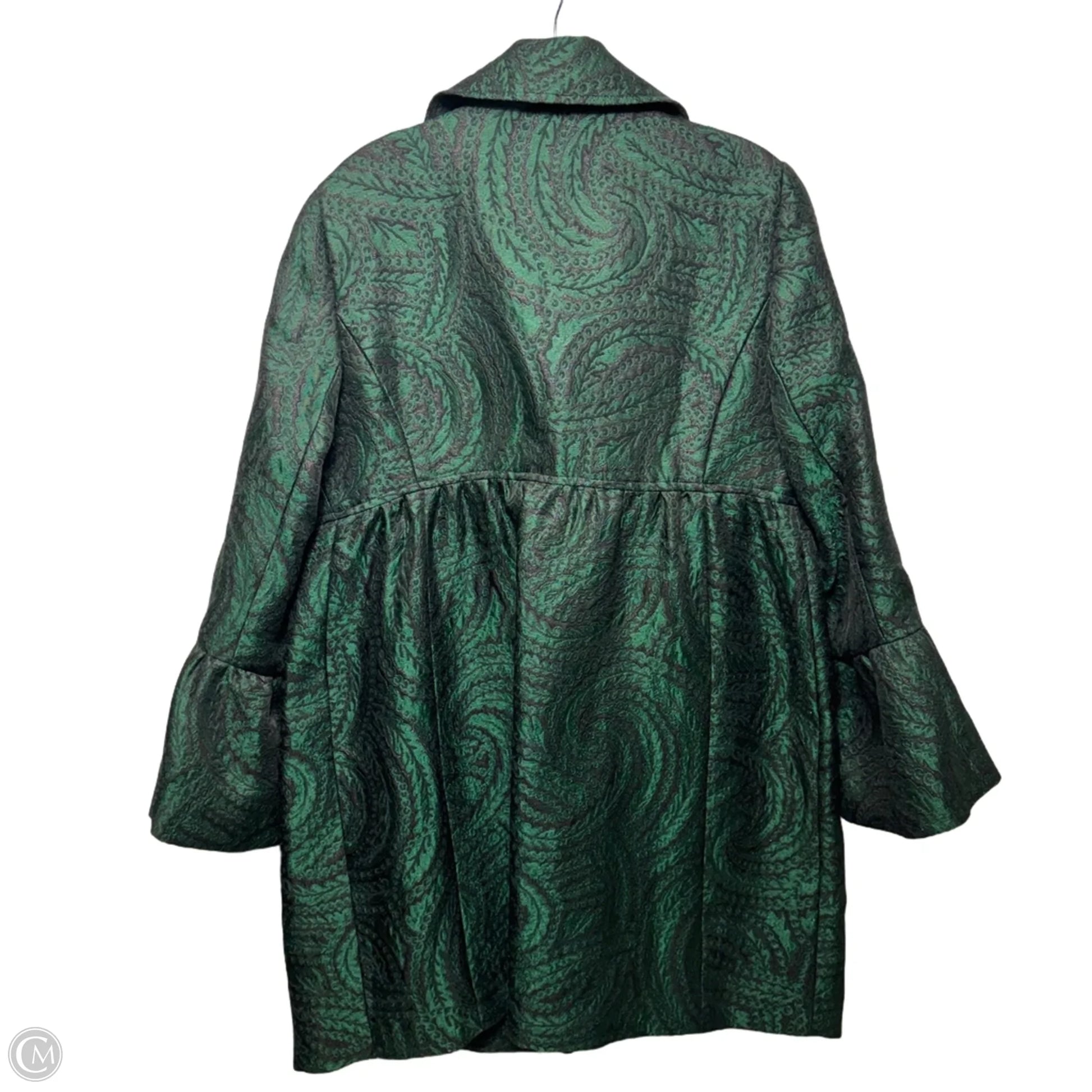 Luxurious Jacquard Coat in Green, Size M. Exquisite craftsmanship, timeless elegance.