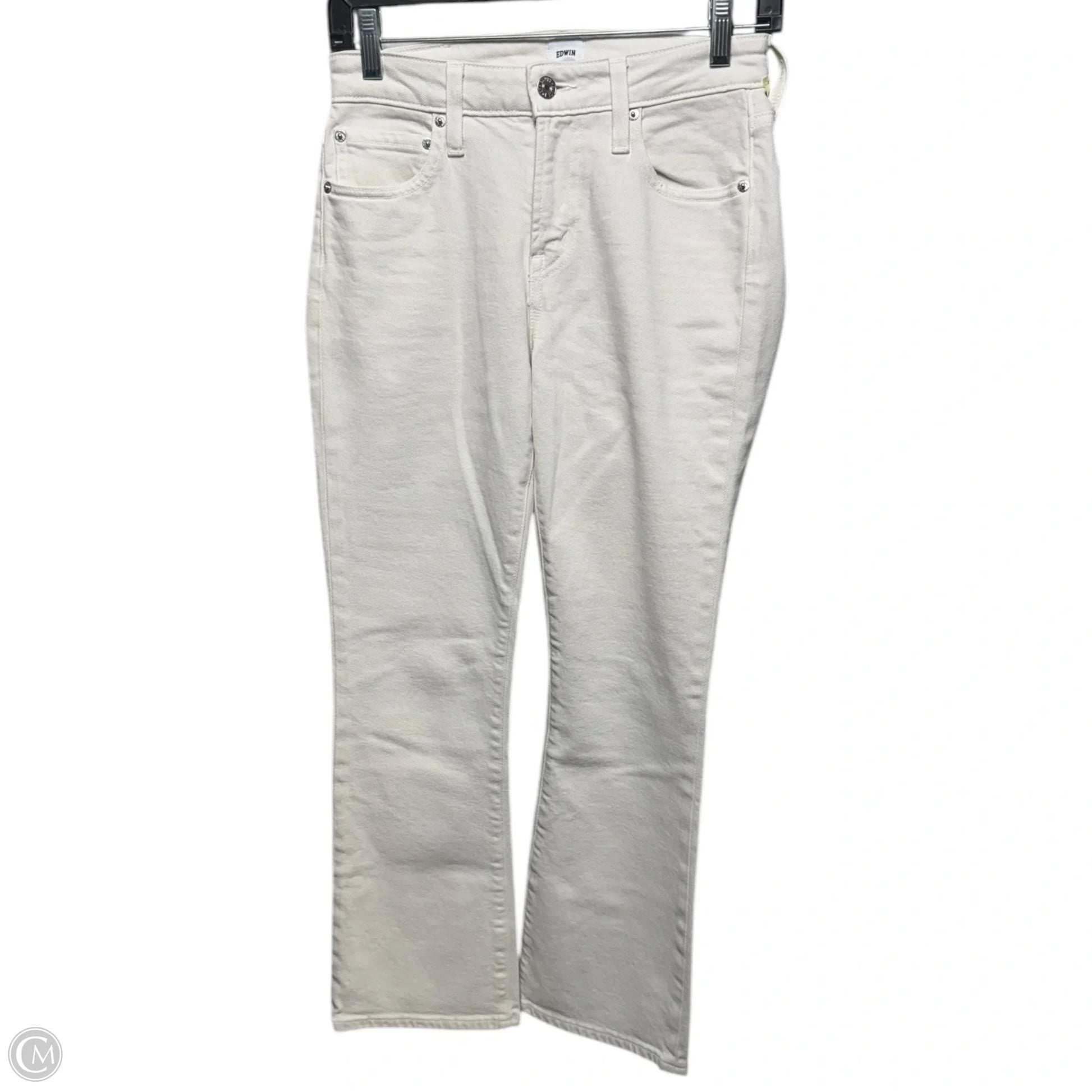 Indulge in the timeless elegance of Edwin's White Denim Boot Cut Jeans, size 0/24. Crafted with premium materials, these jeans offer a tailored fit and unmatched comfort. Make a statement.
