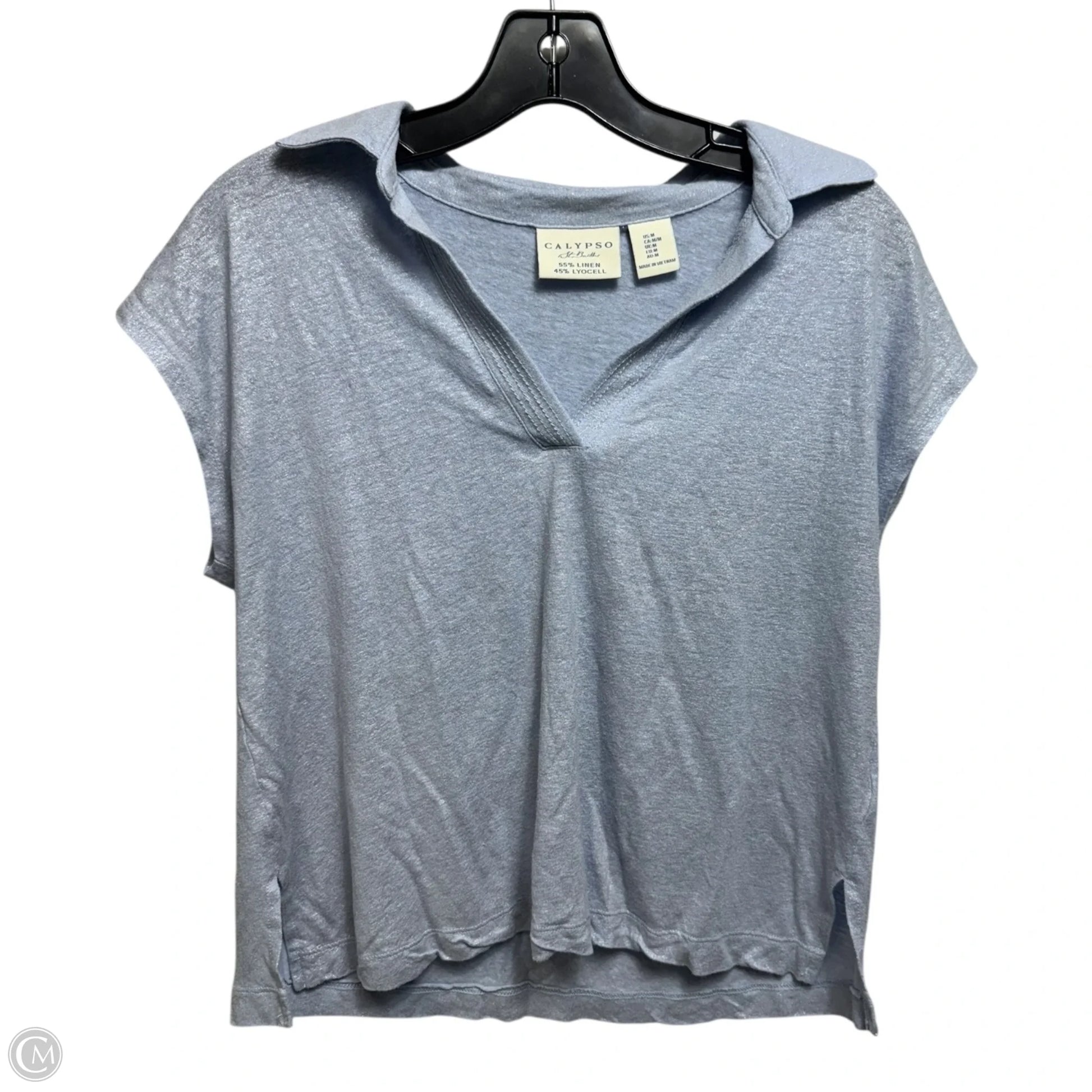 Linen Blend Top Short Sleeve By Calypso St Barth In Blue, Size: M