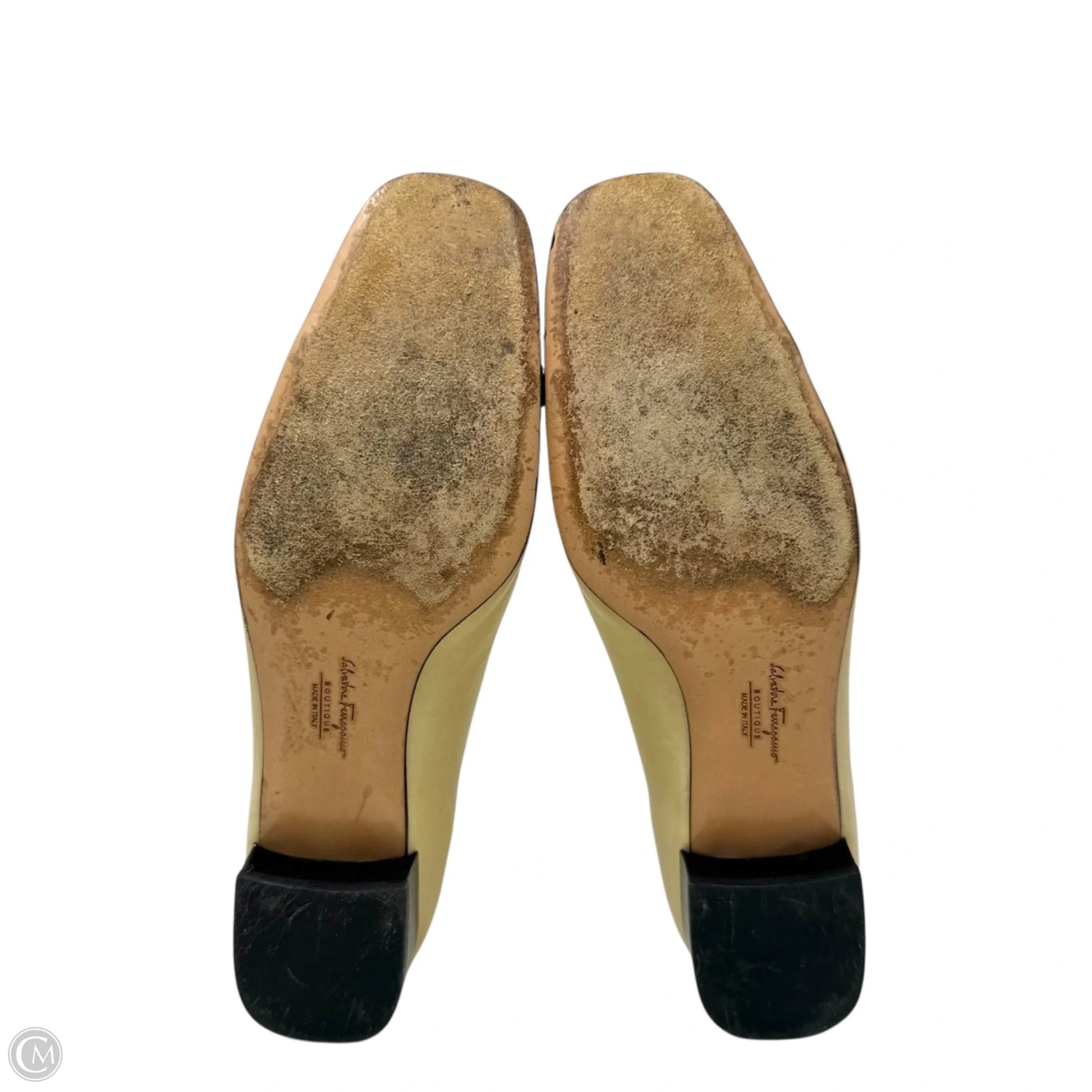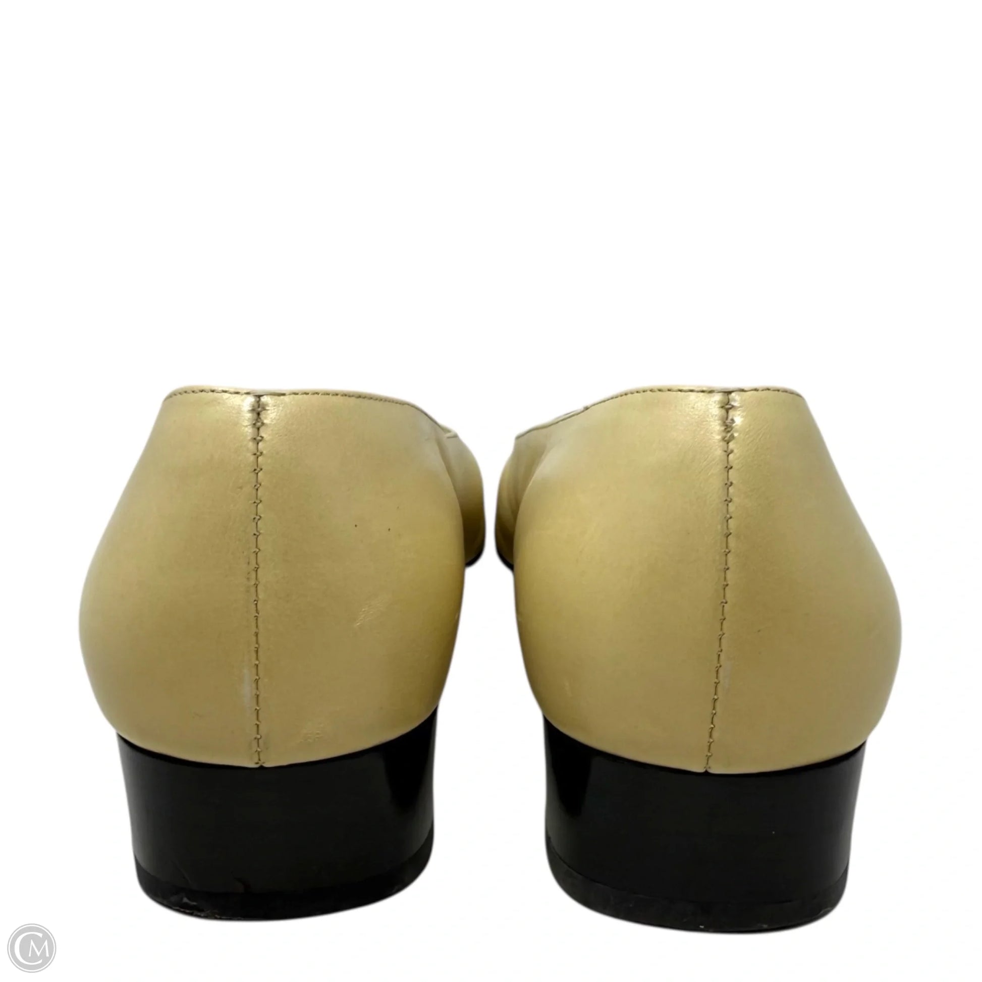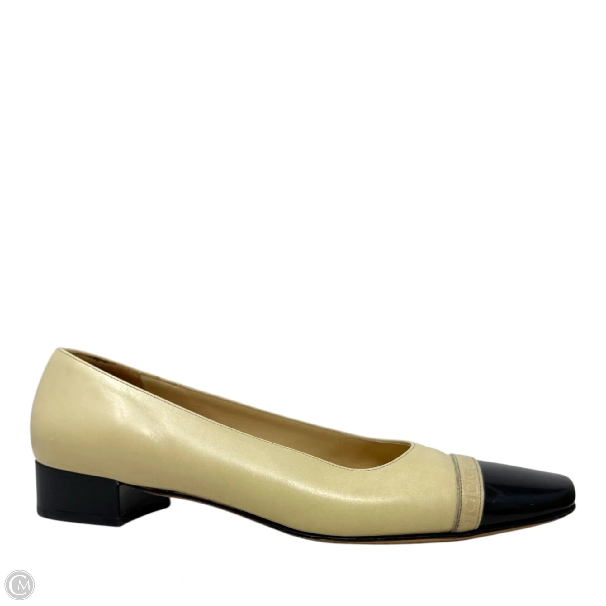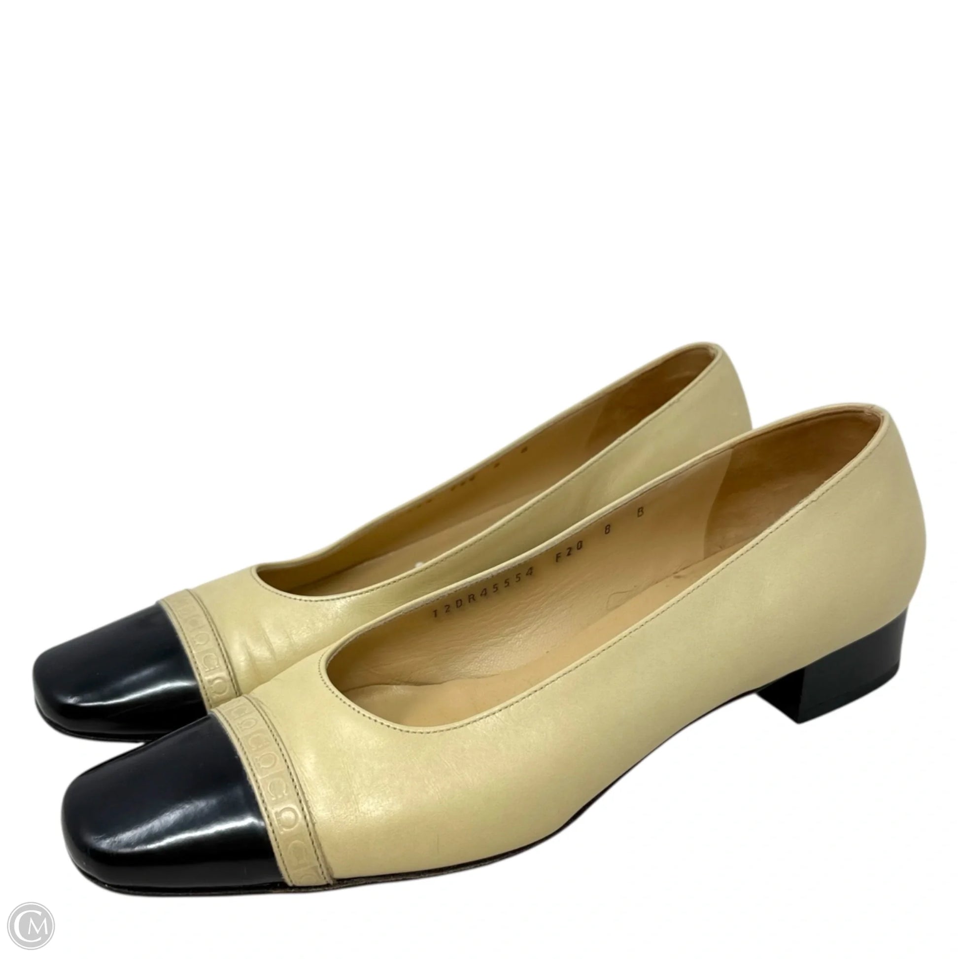 Marissa Leather Cap Toe Pumps Luxury Designer By Ferragamo In Black & Cream, Size: 8
