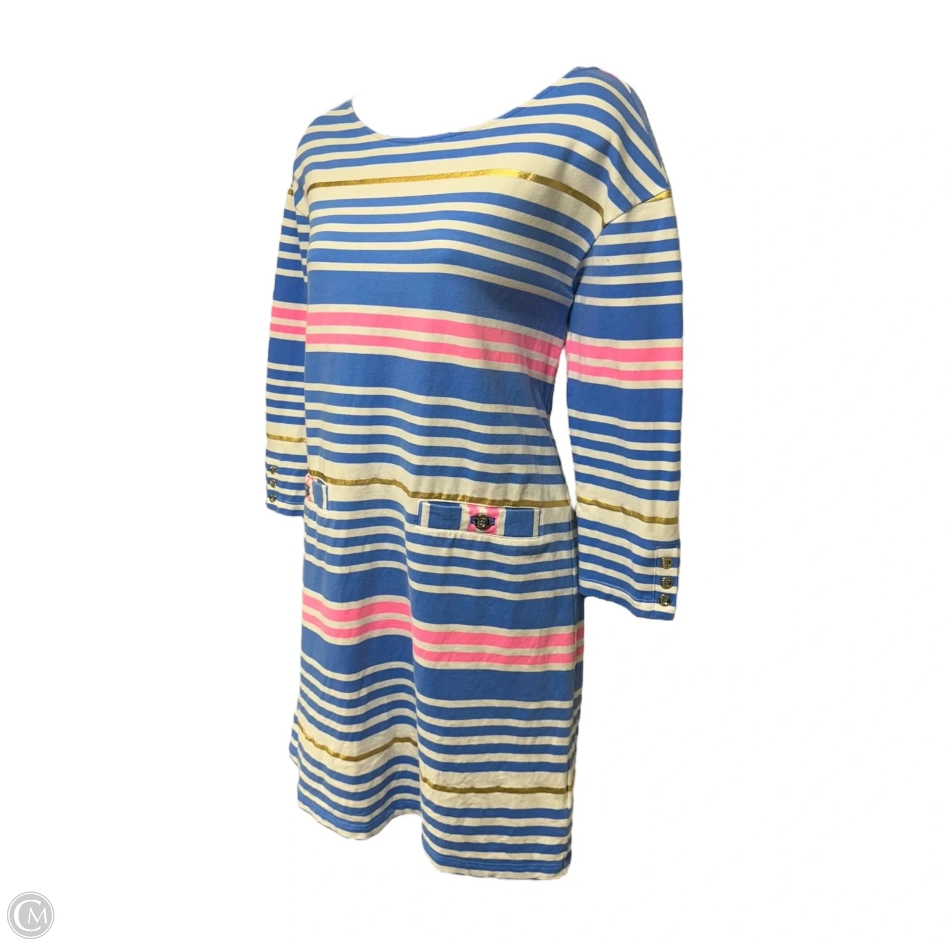 Lena Dress Designer By Lilly Pulitzer In Lapis Blue Tiki Stripe Size: S
