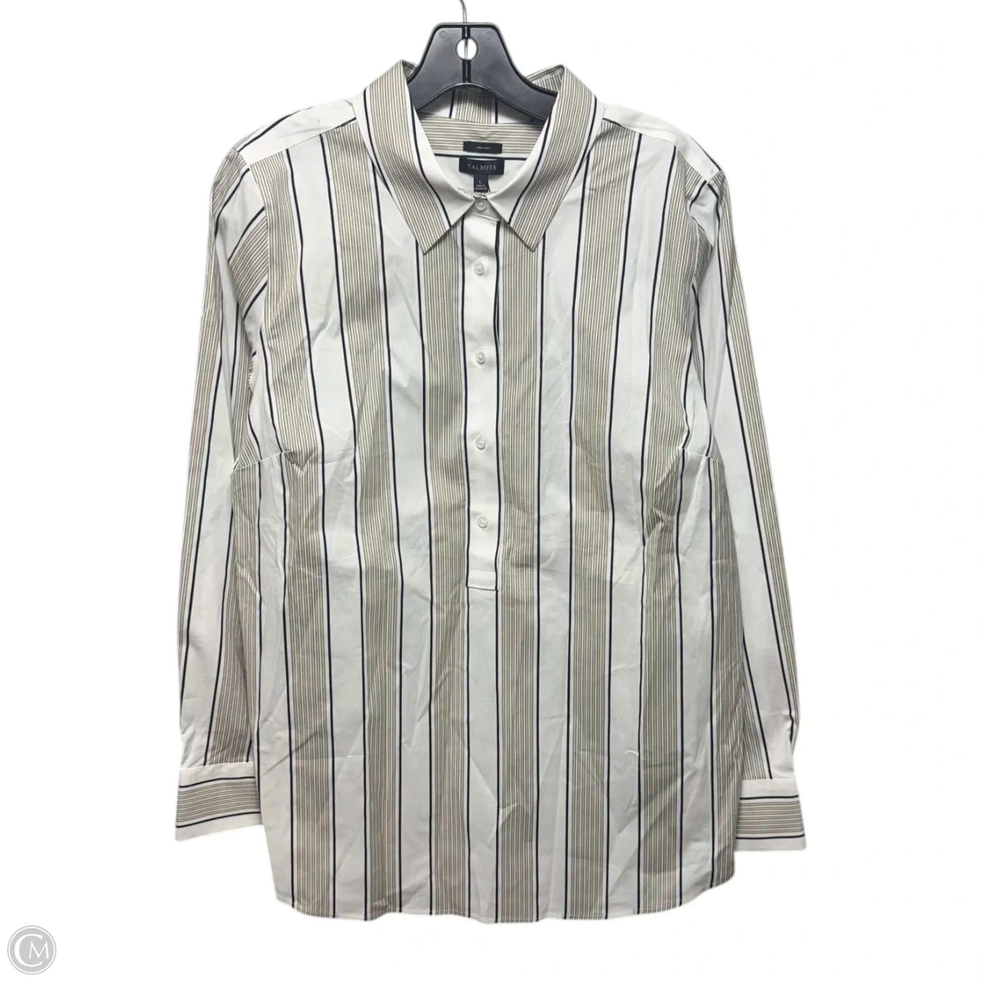 Non-Iron Top Long Sleeve By Talbots In Striped Pattern, Size: L
