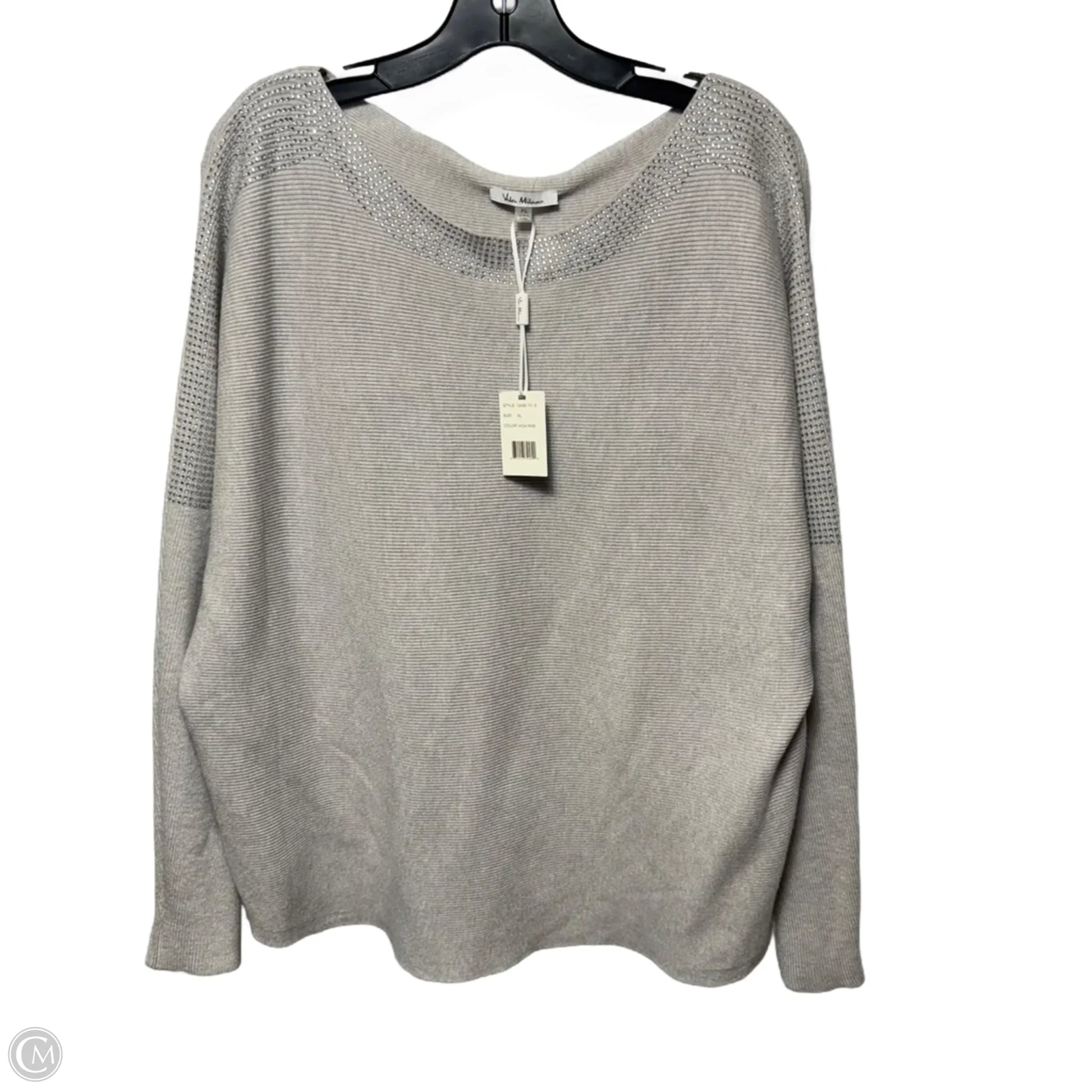 Rhinestone Trim Sweater By Vila Milano In Grey, Size: Xl