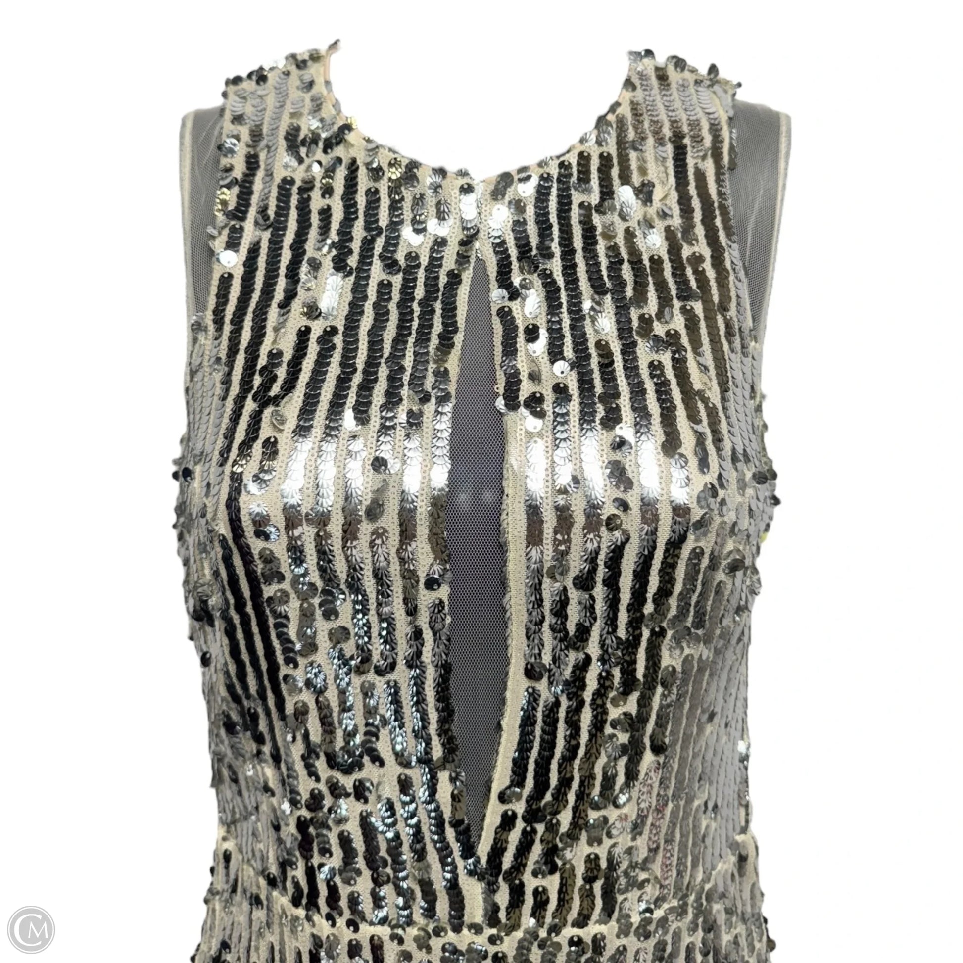 Alexis Sequin Mesh Trim Dress Party Midi By Gianni Bini In Silver, Size: XS