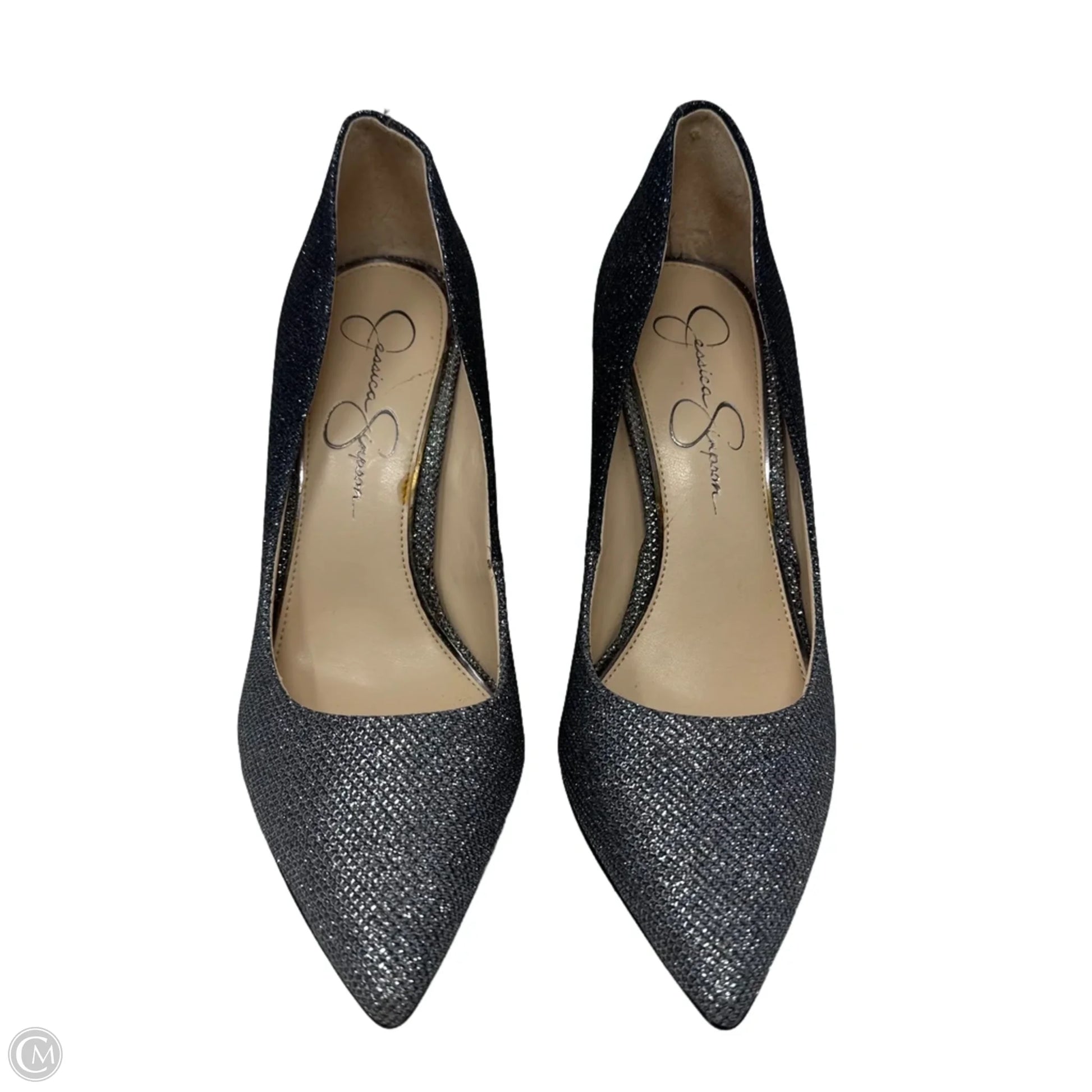Shoes Heels Stiletto By Jessica Simpson In Black & Silver, Size: 9
