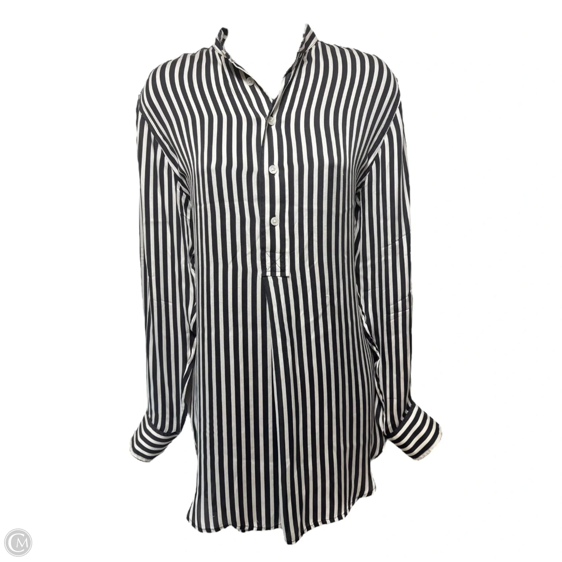 Silk Blouse Long Sleeve By Ralph Lauren Black Label In Striped Pattern, Size: 4