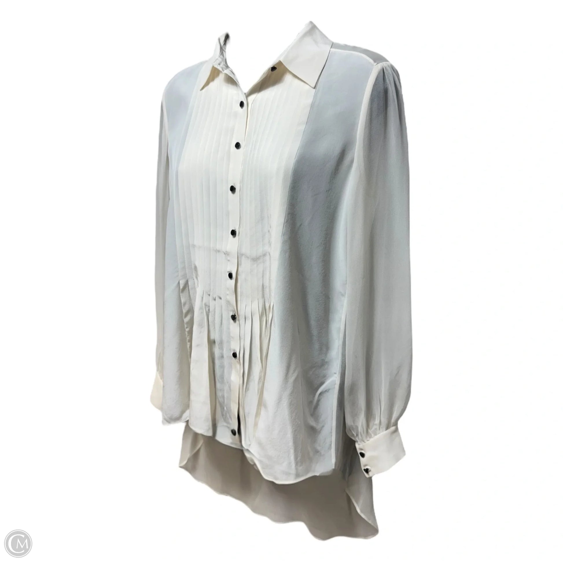 The Elizabeth and James Silk Pin Tuck Blouse in cream, size XS, exudes elegance with its delicate texture and timeless design.