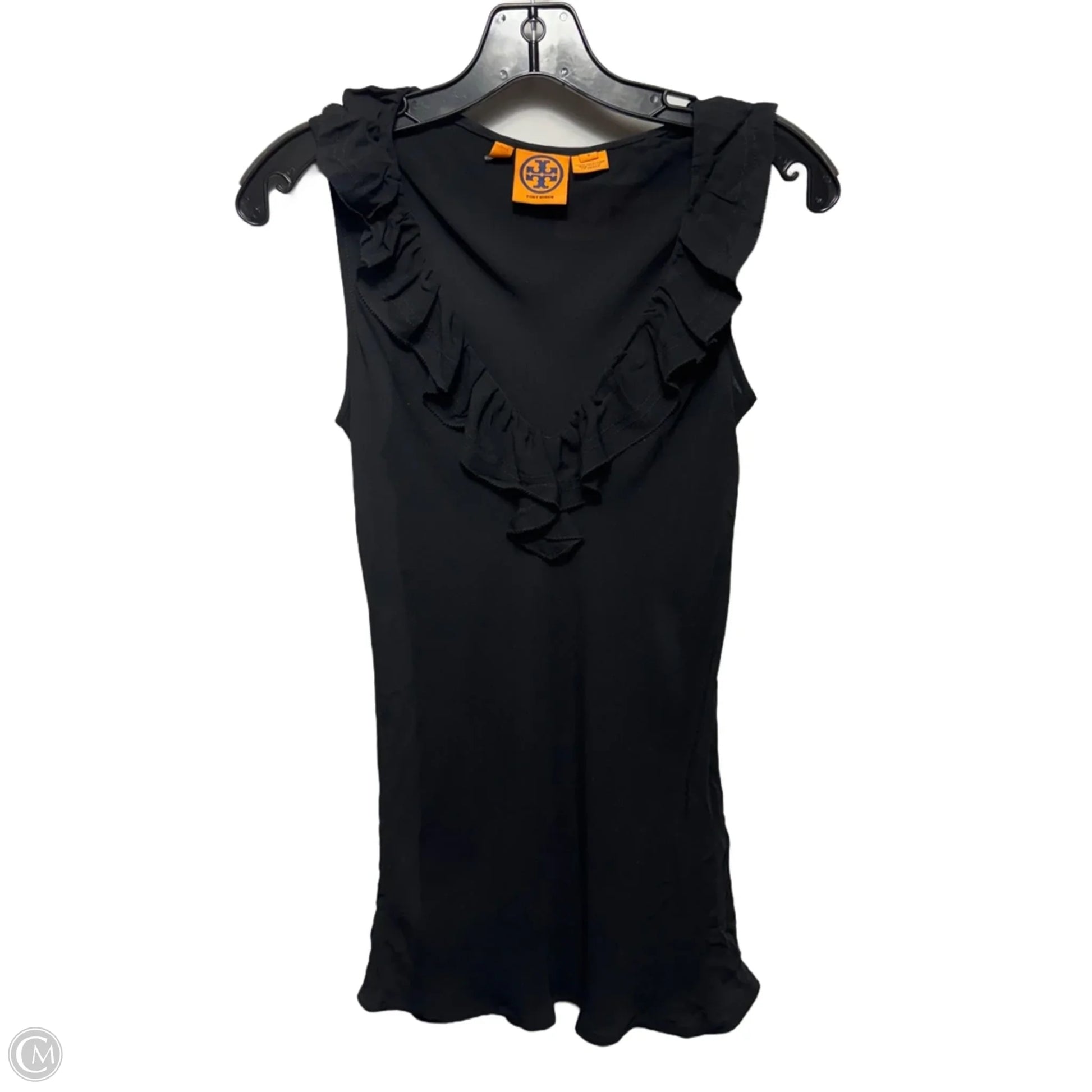 Silk Ruffle Top Sleeveless Designer By Tory Burch In Black, Size: 4