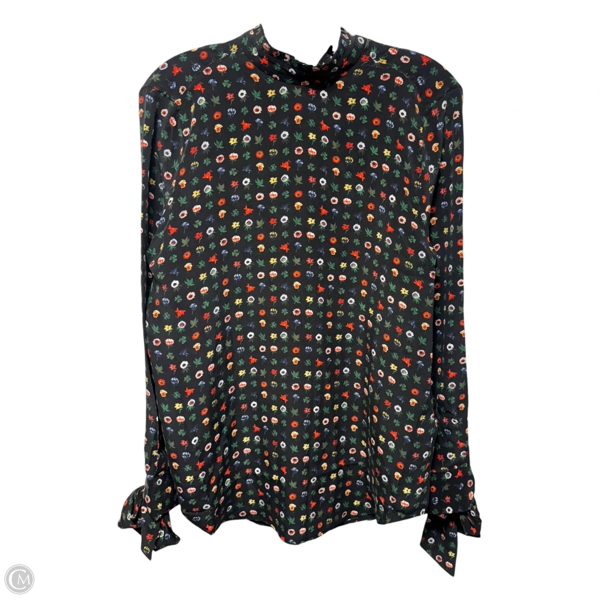Silk Tie Back Blouse Long Sleeve By Equipment In Floral Print, Size: XS