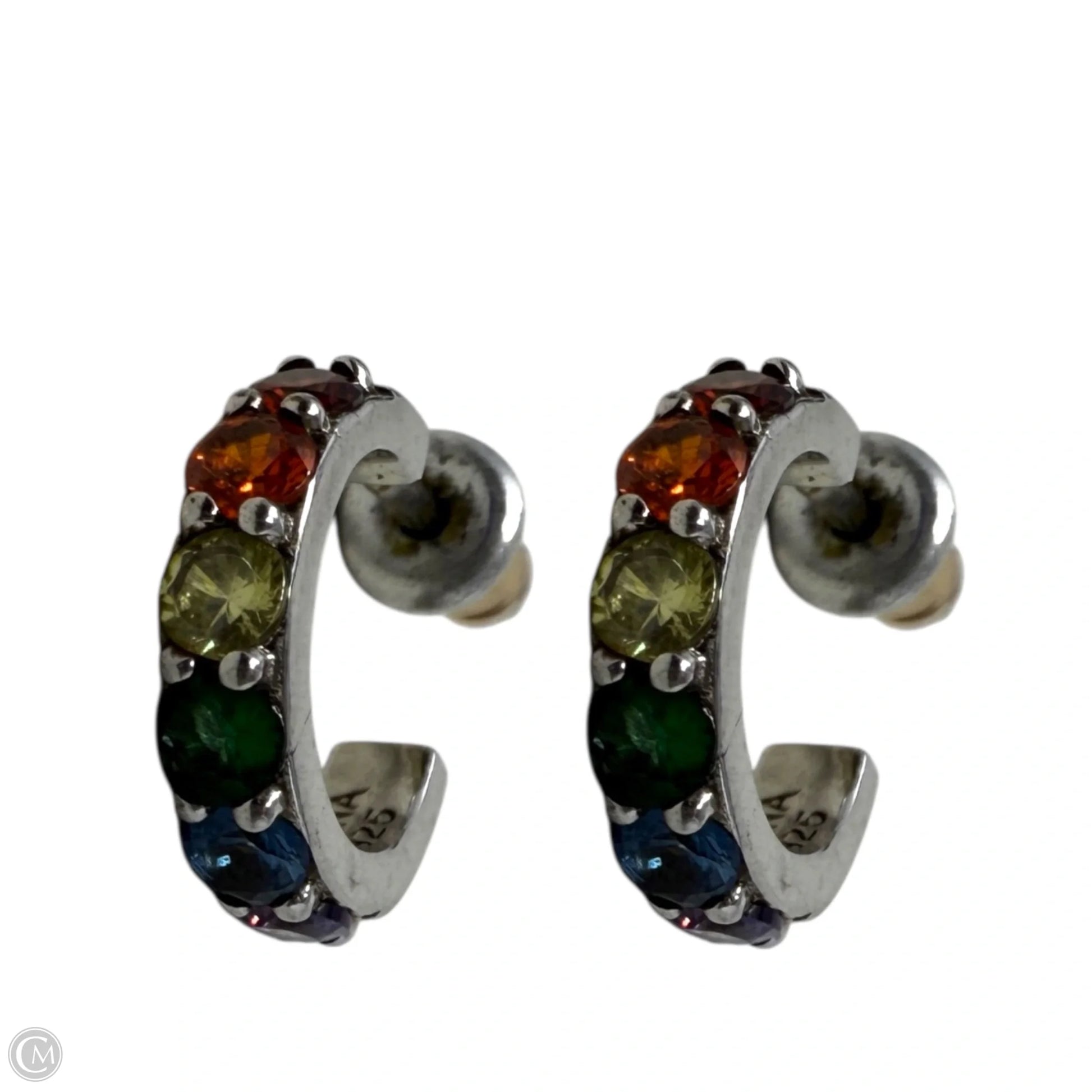 Sterling Silver Rainbow Crystal Hoop Earrings