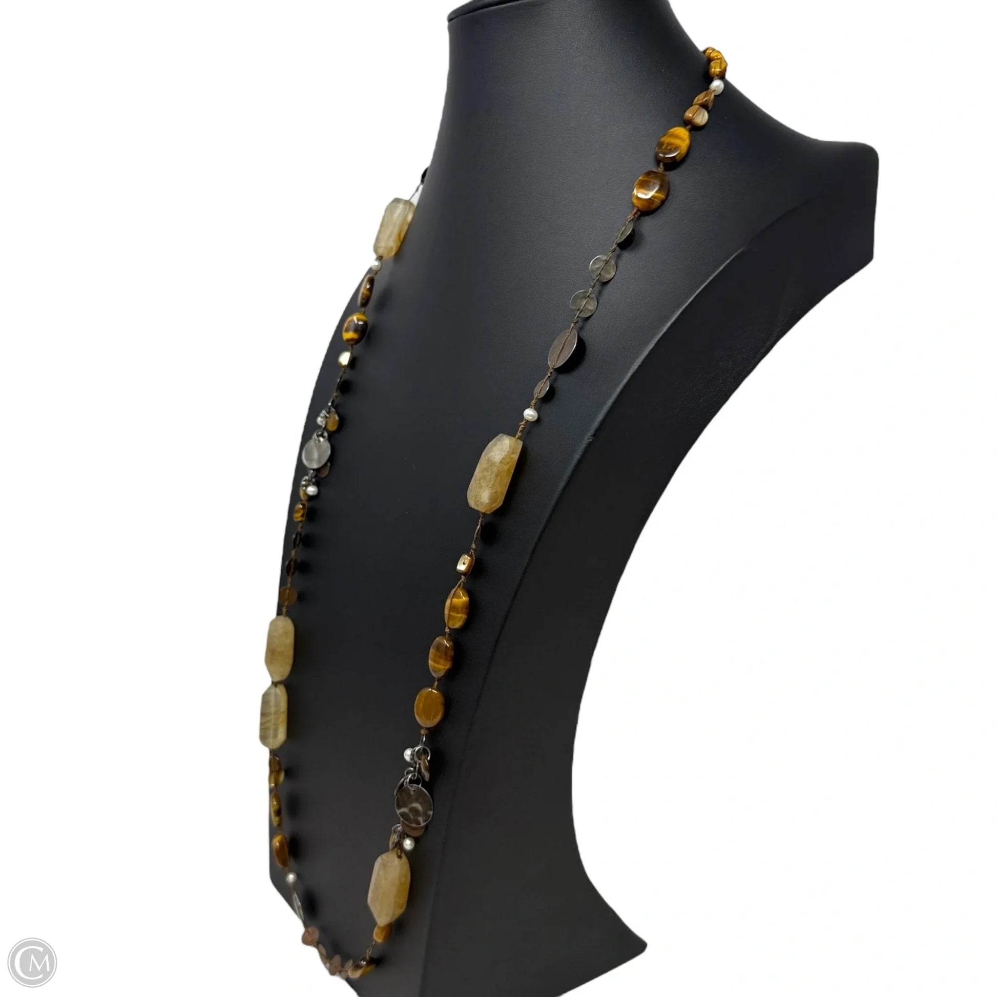 Sterling Silver, Tigers Eye, Quartz, Copper & Pearl Beaded Station Necklace By Silpada