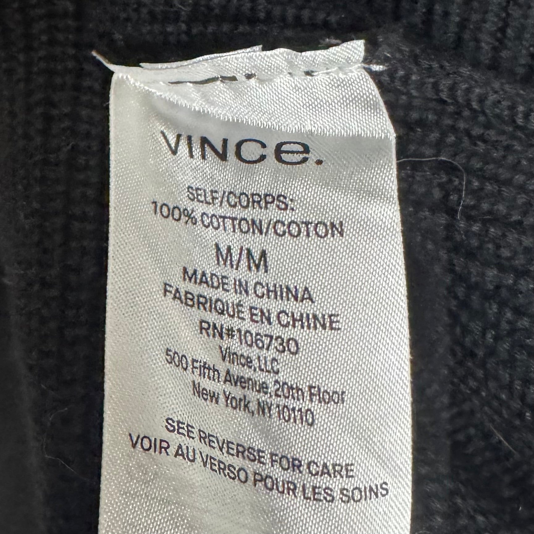 Cozy up in this sleek black Vince sweater, size M. Effortlessly stylish and versatile for everyday wear.