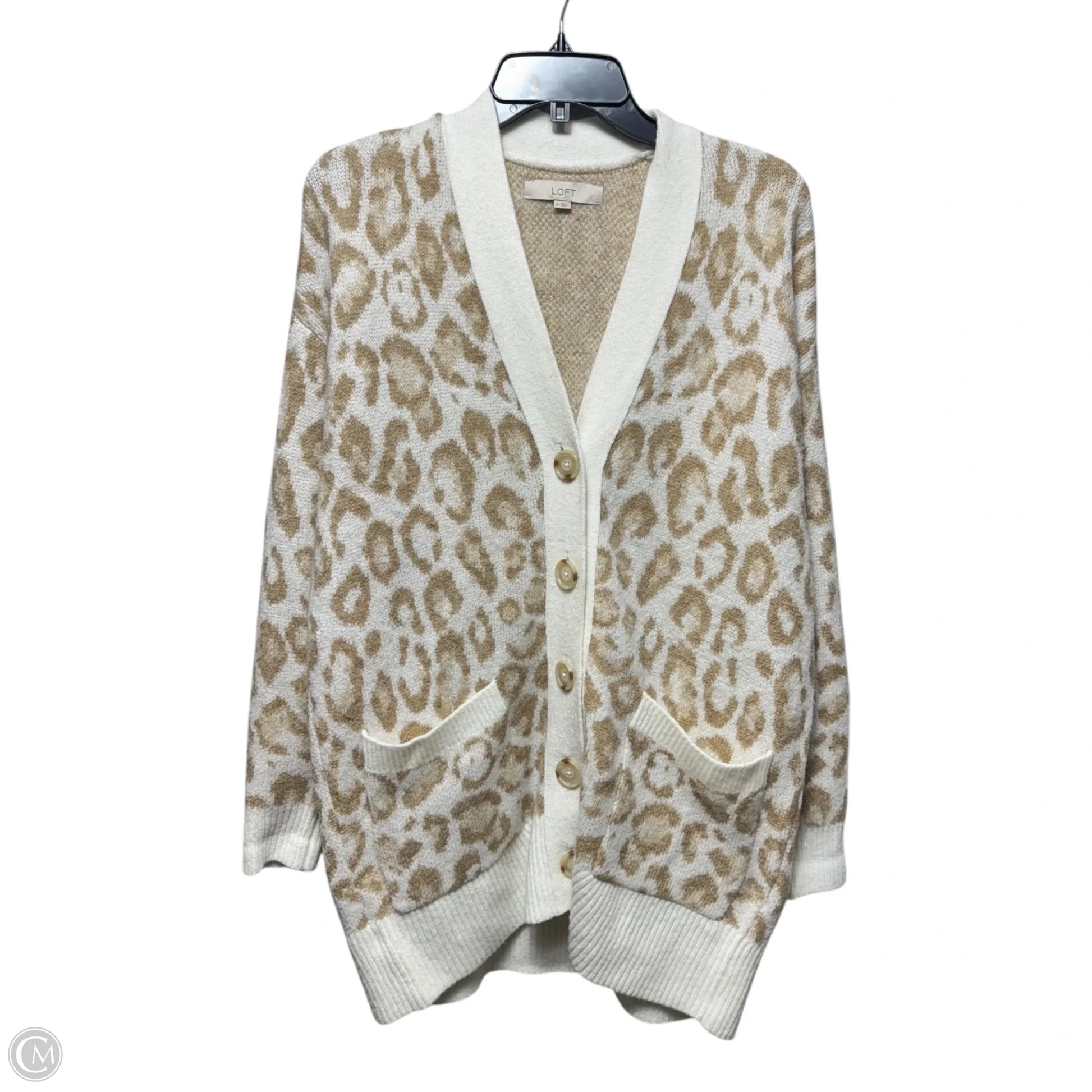 Sweater Cardigan By Loft In Animal Print, Size: M