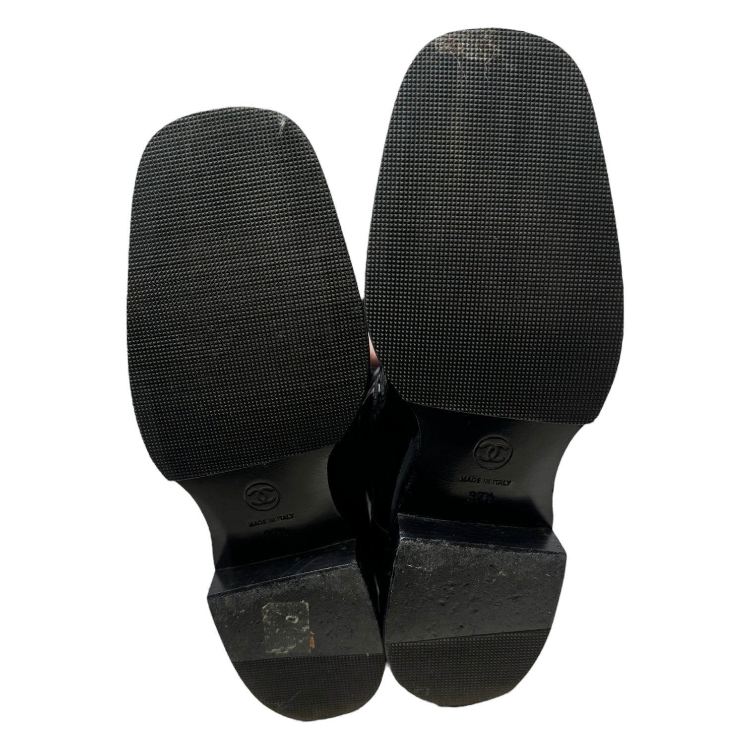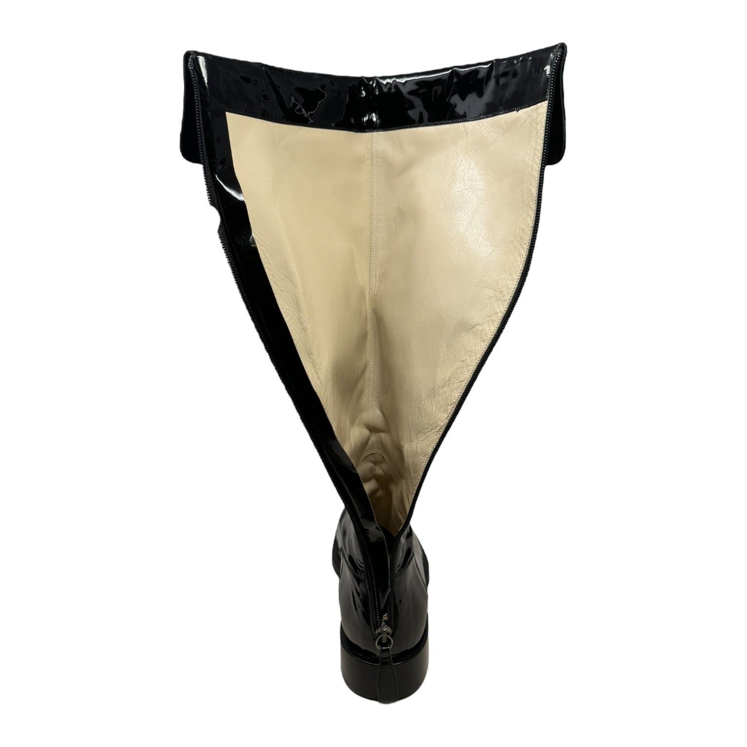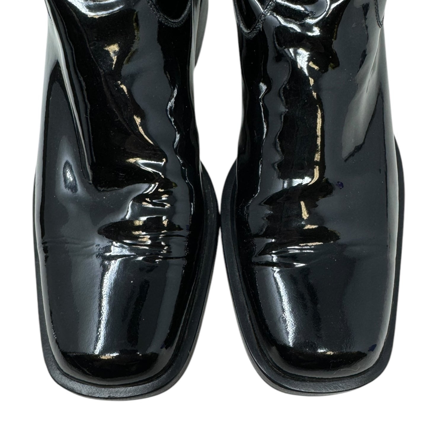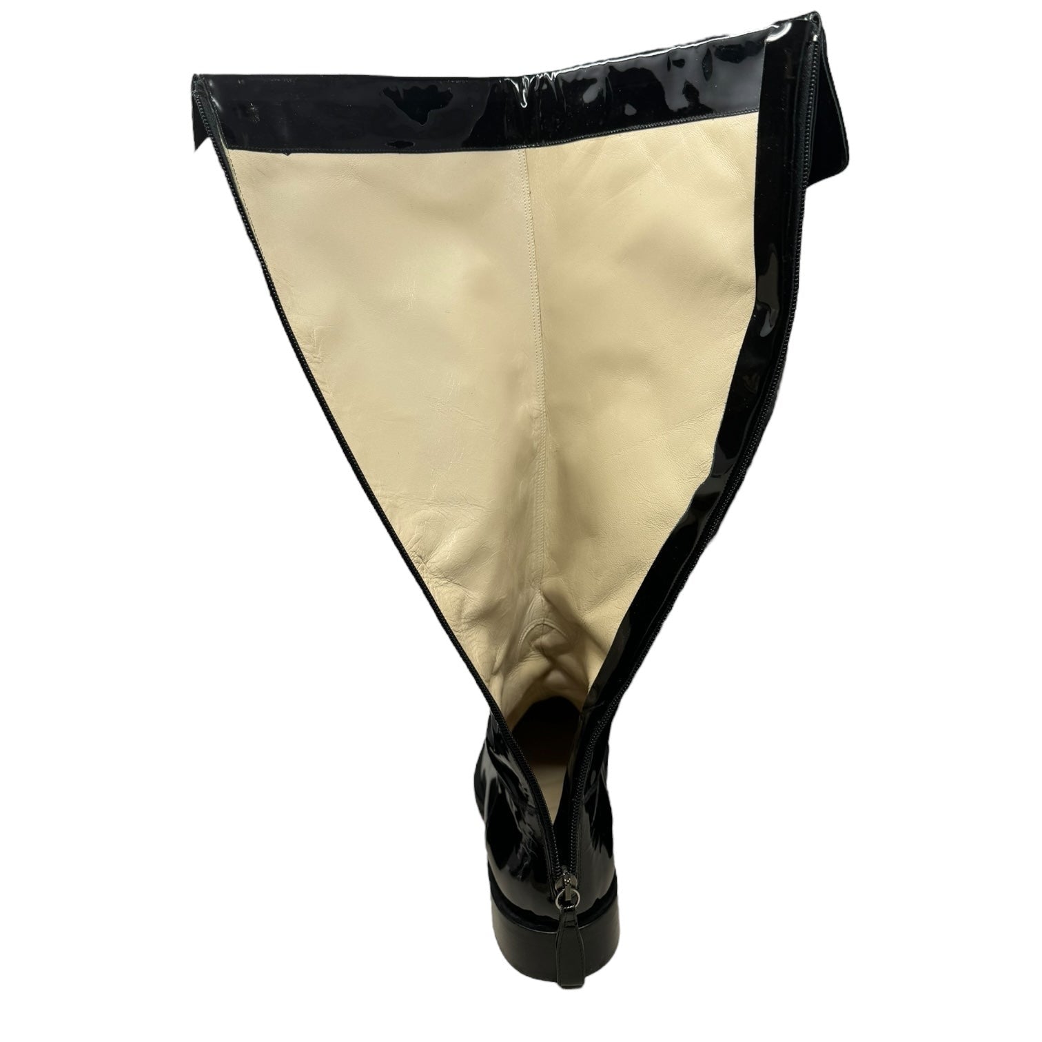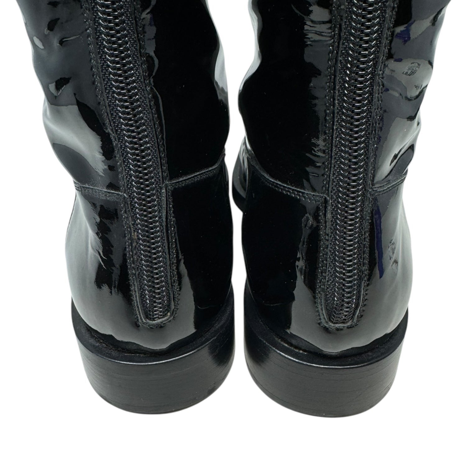 Vintage 2001 F/W Collection Patent Leather Cavalier OTK Boots Luxury Designer By Chanel In Black, Size: 7/37.5