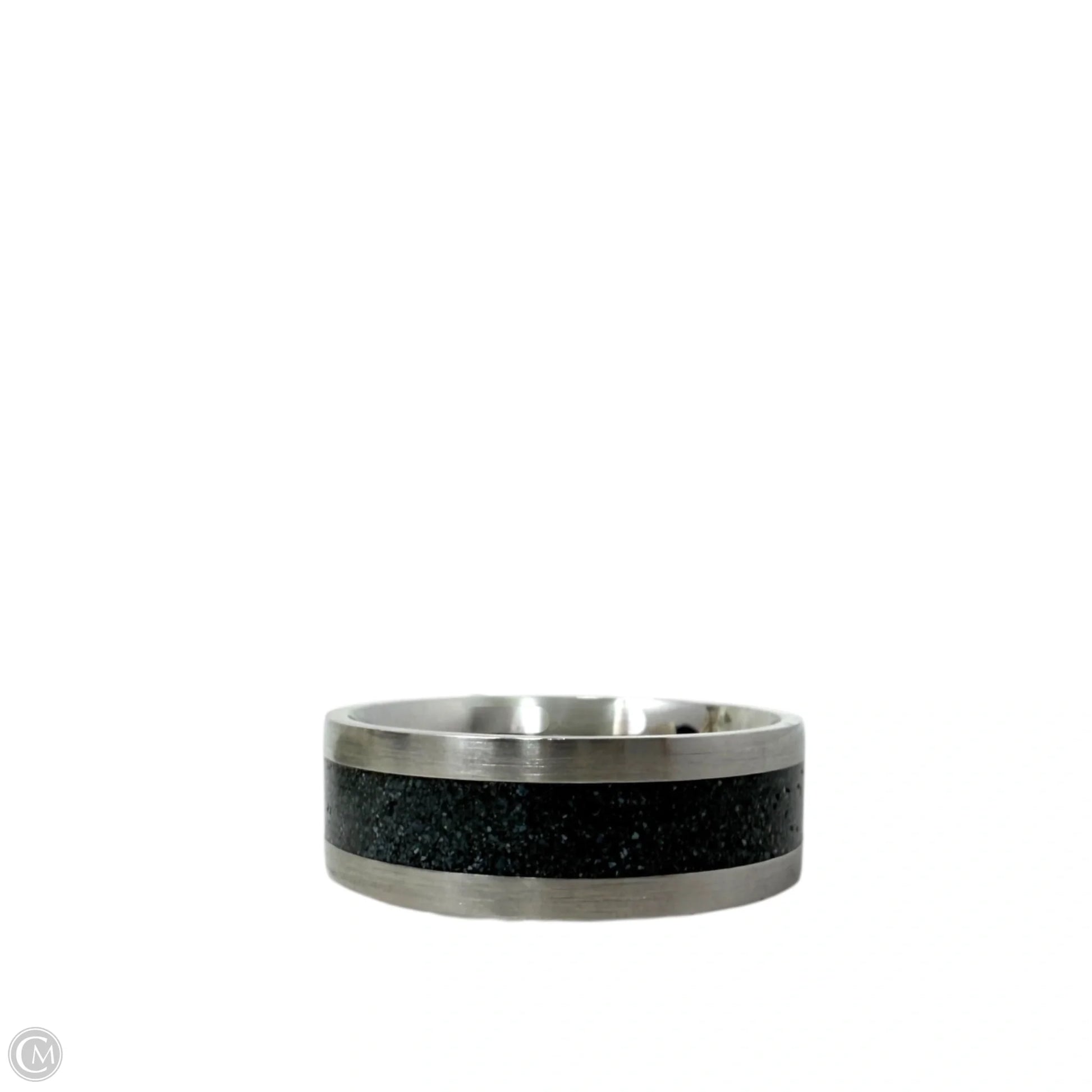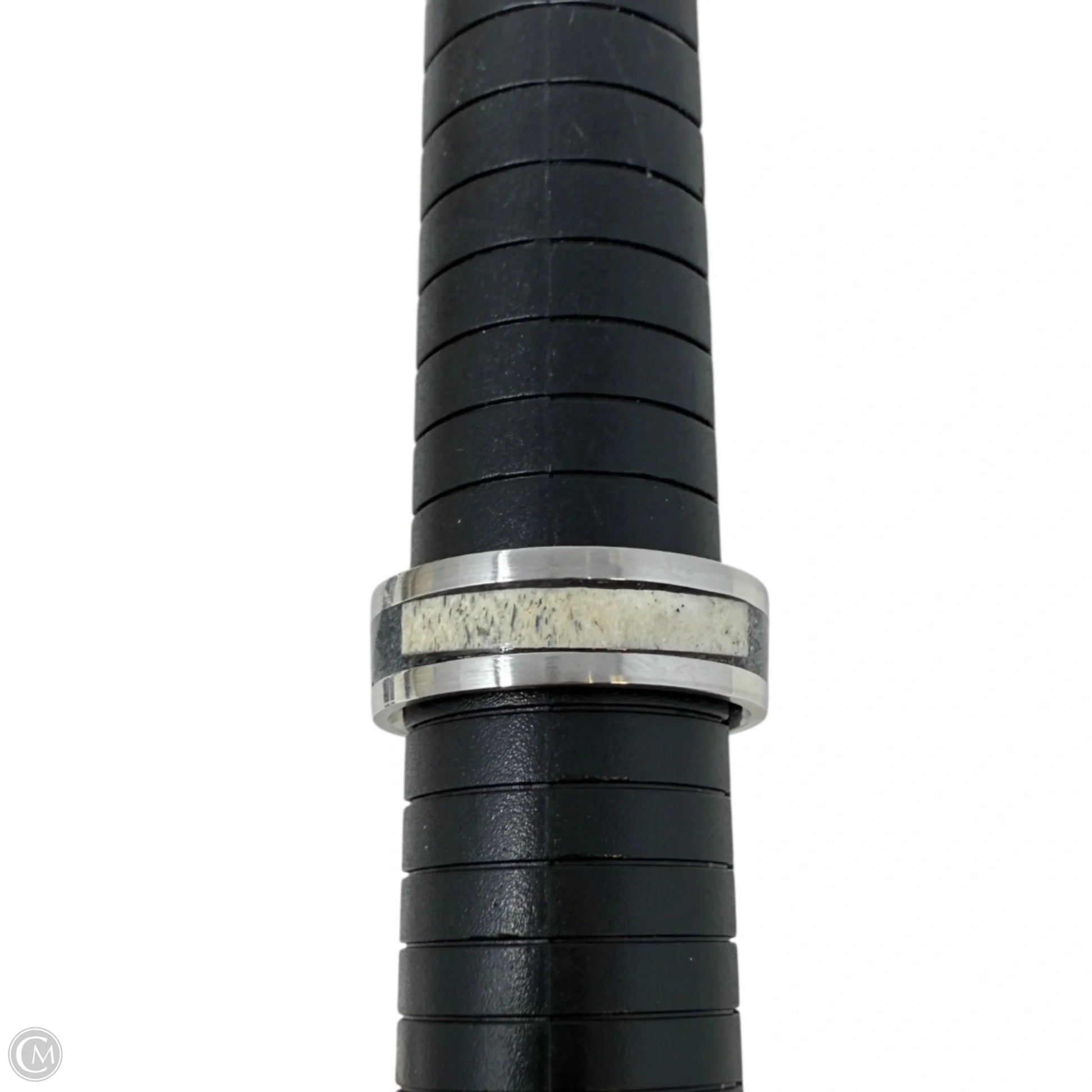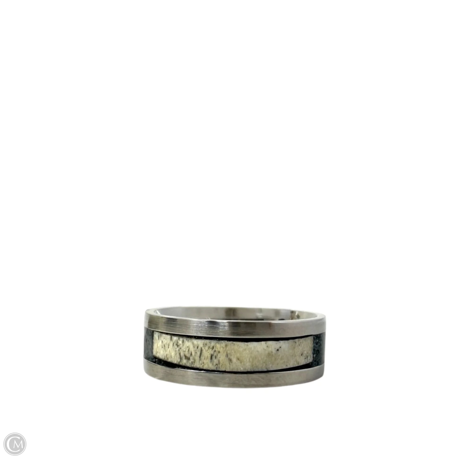 White Tail Antler & Black Quartz Inlay Band Ring, Size: 12