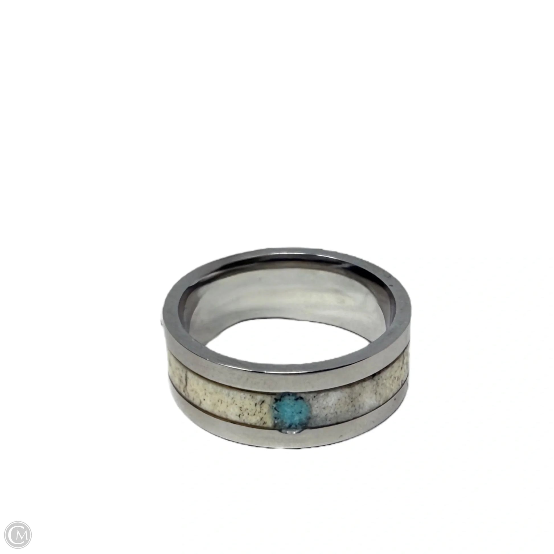 White Tail Antler & Crushed Turquoise Inlay Band Ring, Size: 9