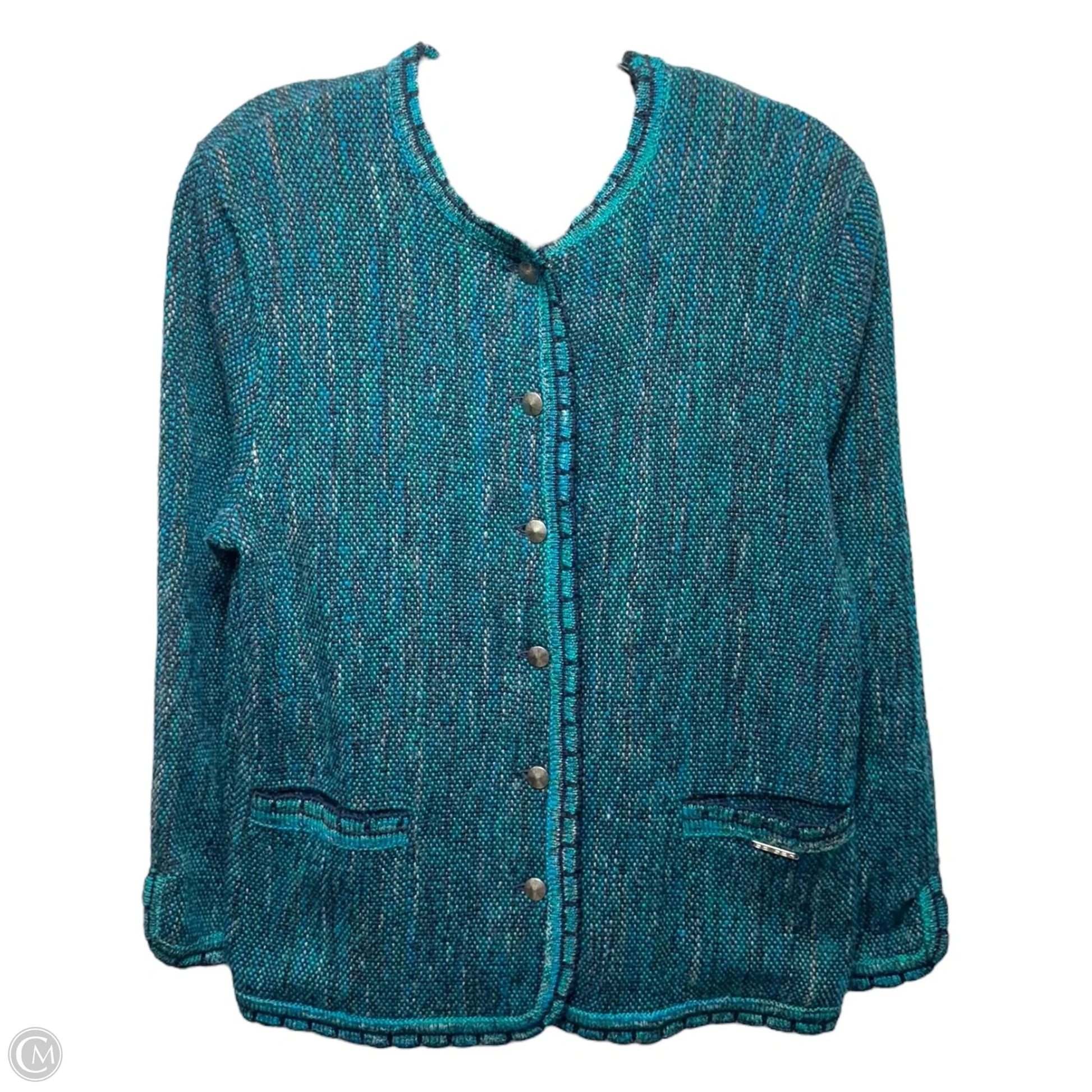 Wool Blazer By Geiger In Green and Blue, Size: 4